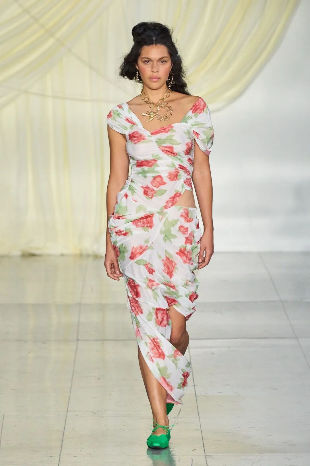 在刚刚结束的伦敦时装周上,Yuhan Wang再一次以其标志性的诗意印花为我们带来了浪漫的属于春的咏叹调。这一季她创造了一个歌颂女性毅力和勇气的系列,同时强调了她们所面临的压力。