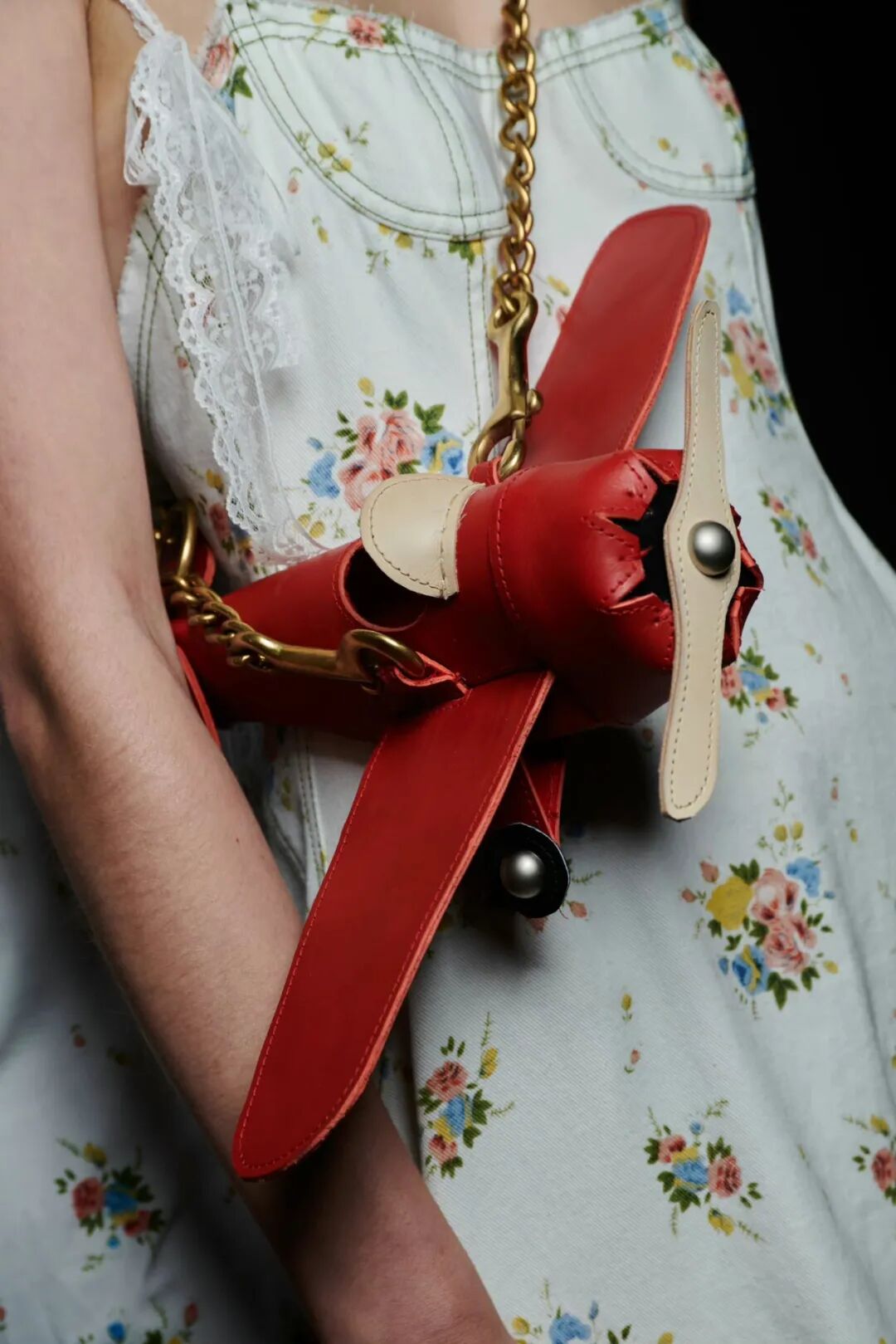 秀场配饰中一款引入注目的可爱飞机包,是对Earhart的Lockheed Vega 5B模型的致敬。