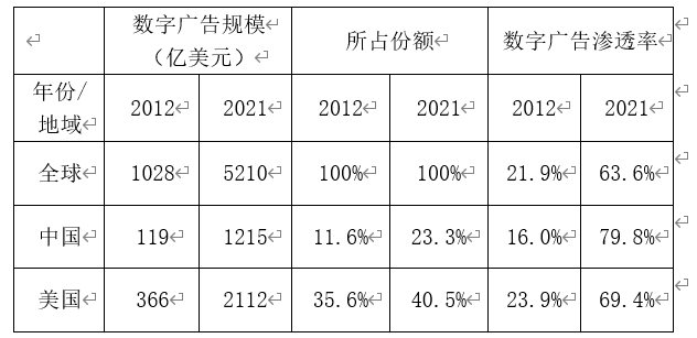表1 2012和2021年数字广告发展对比[6]
