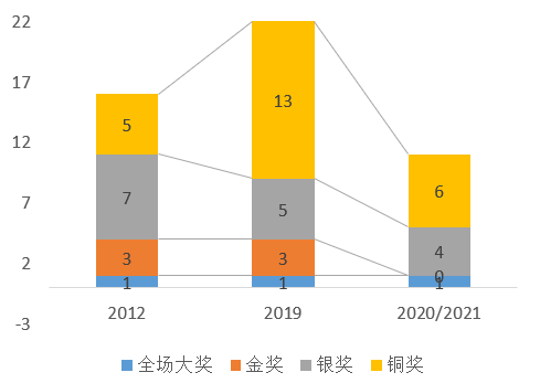 图3 2012-2021年我国在戛纳国际创意节获奖数量[5]