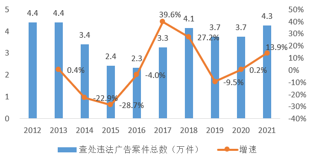 图5 2012-2021年广告行业查处违法案件数量[7]