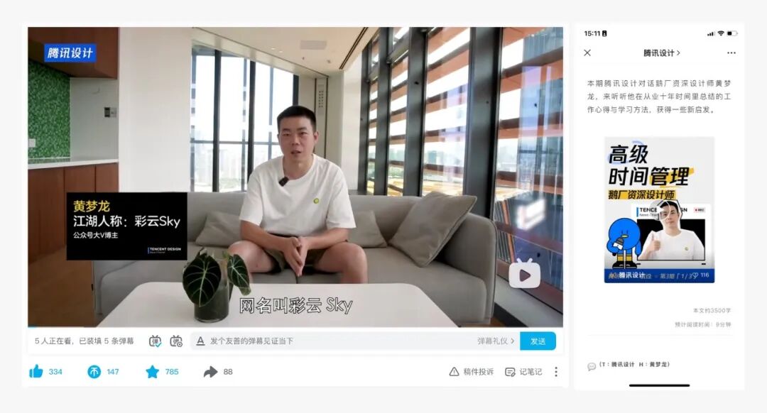 1)受邀腾讯设计出品了一期专访。被官方发现并认可,是因为有了解到我转行的经历以及长期更新专业文章。现在在腾讯设计官方公众号,腾讯设计B站,视频号都上发布了专访的文章和视频,反馈还不错。专访文章请见:《腾讯设计官方专访彩云,分享我的高级时间管理》
