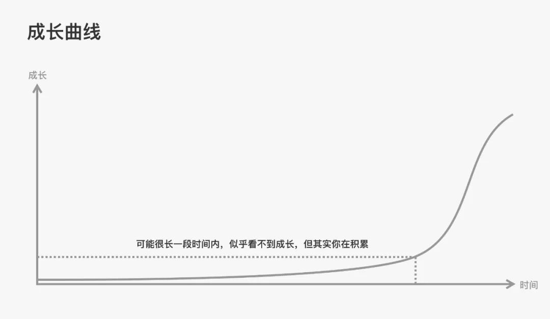 也许你现在在做的事情看不到成果,但不要害怕,你并不是没有成长,而是在扎根。只要你持续不断的坚持,后面的改变就会越来越大,一通百通,最终会迎来爆发式的成长。这不是鸡汤,是我的切身体会。