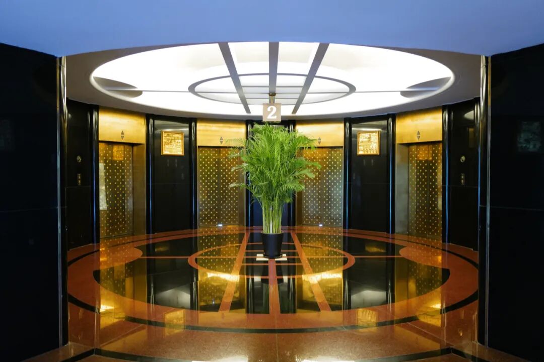 摩天楼、观光电梯、屋顶餐厅都是上海第一代五星级酒店"七仙女“(华亭宾馆、静安希尔顿、新锦江、波特曼香格里拉、锦沧文华、花园饭店、威斯汀太平洋)常见的“时髦”元素。谨奉上一组华亭宾馆的电梯多角度特写,8部电梯围成一个电梯塔柱,占据着华亭宾馆磅礴建筑体的C位,C位中C位是两部由玻璃幕守护轨道的观光电梯,底部原本有着五彩变幻的光束,上上下下如同火箭一般,一如当年那个根本分不清主角是电梯还是华亭宾馆的上海三菱电梯广告里展现得那般优雅时髦。