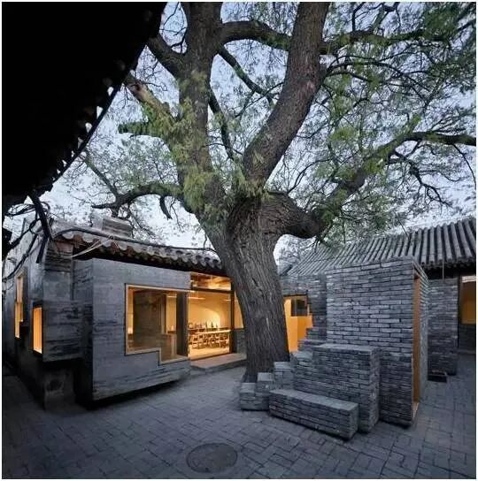 在这些空间微改造的案例当中,我们要讲到的是,张轲老师获得阿尔瓦·阿尔托奖的作品,一个微合院项目。非常典型的是,北京很多四合院都有一棵枣树或者几棵枣树。而该作品在一个传统四合院空间的空地上,围绕一棵枣树做了一个砖砌的小房子,这个小房子可能小到最多容纳3-4个人同时站在里边,但是这个房子的周边是有台阶的,大家可以步行到小房子的房顶上面。这个就叫作微合院计划,在很小的微改造项目里边,大家可以想象它的造价是非常低的,它的空间是非常小的,但是他为四合院提供了一种新的可能性,而且极具启发性,让大家重新认知了四合院的功能,认知了其公共性以及可能带来的一些艺术性和展示性的作用,所以它是一个拓展型的产品。