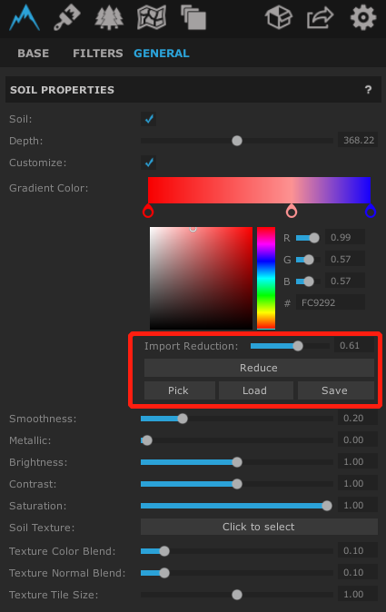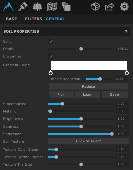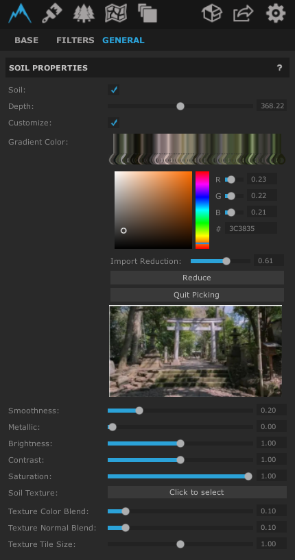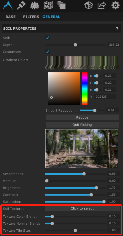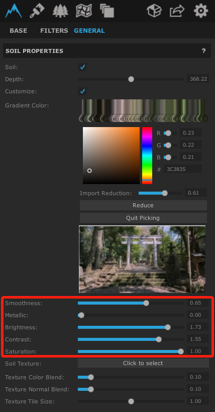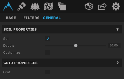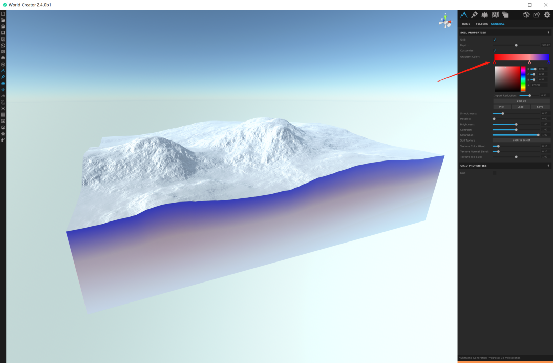 首先是Soil Properties,这个功能主要就是设置山体底部的土壤部分,就是下图指出的部分: