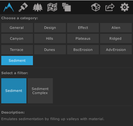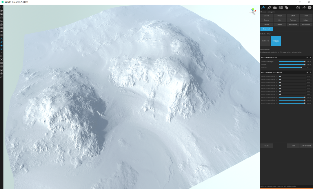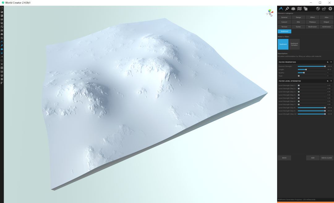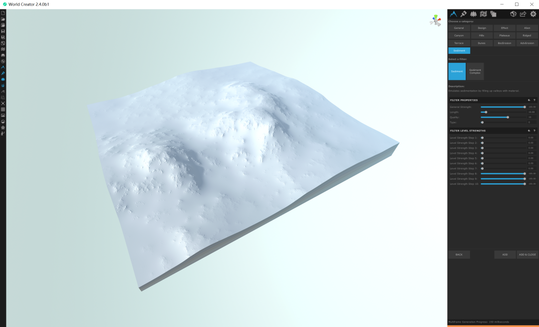 好了,以上就是滤镜中Sediment的部分,据此所有的滤镜部分就全部结束了。关于World Creator的使用,记得持续关注我们哦!我们下期再会。