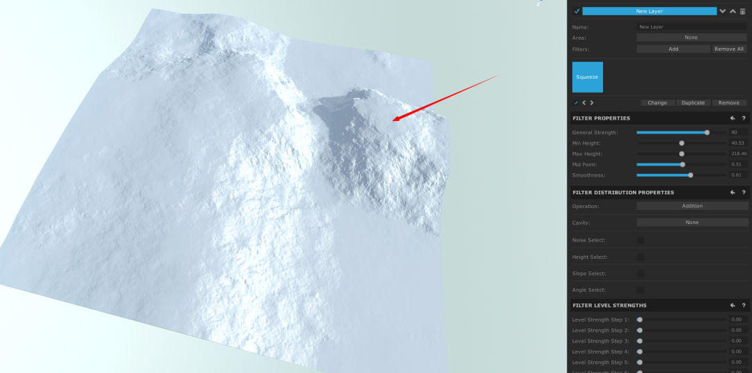 Strength(强度):其实和高度控制差不多,可以理解为加了一个调节功能,类似图层加了个不透明度;