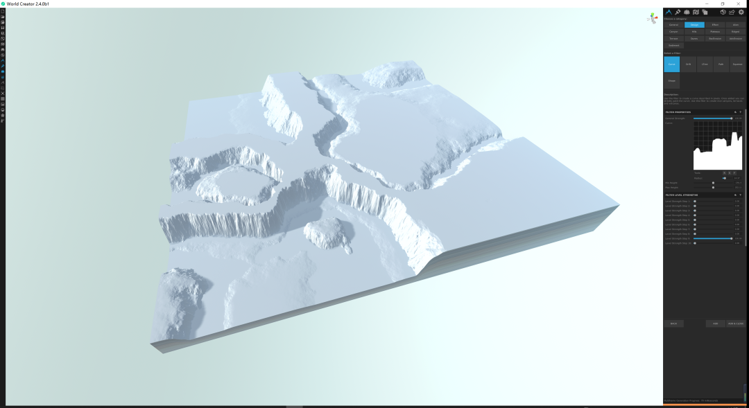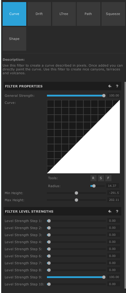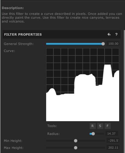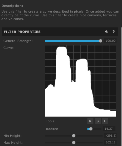 首先是Curve曲线滤镜,这个滤镜就是在像素格中用笔刷绘制曲线,通过这个滤镜可以制作出随机的峡谷、梯田和火山等。