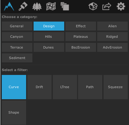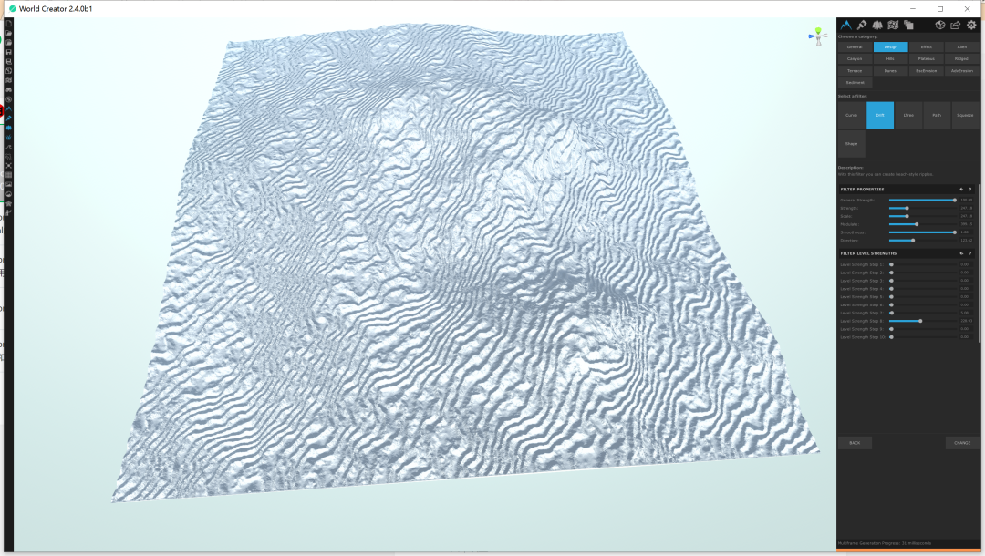 上次分享中我们讲解了WorldCreator滤镜工具General的使用。这个滤镜工具可以得到一些山体通用效果,但是如果想对山体进行更多的造型调整,就需要使用他的Design滤镜了。