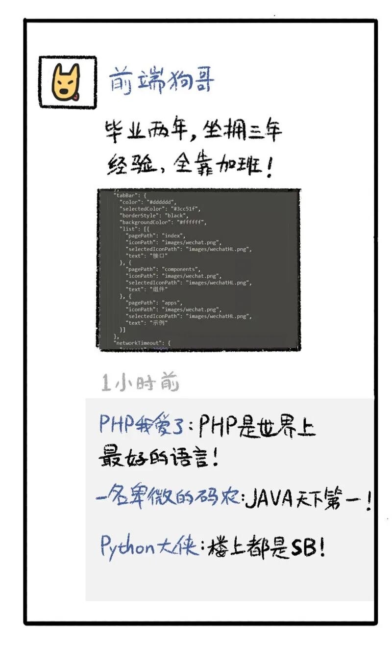 互联网圈子里有一个神奇的群体——程序员。他们每天穿着格子衫,背着双肩包挤地铁,一到公司就陷入了“打代码-喝水-上厕所-打代码-喝水-上厕所”的死循环。热(jia)爱(ban)工(yan)作(zhong)的他们从未伴着日落回家,可以说是非常辛勤的互联网民工了。