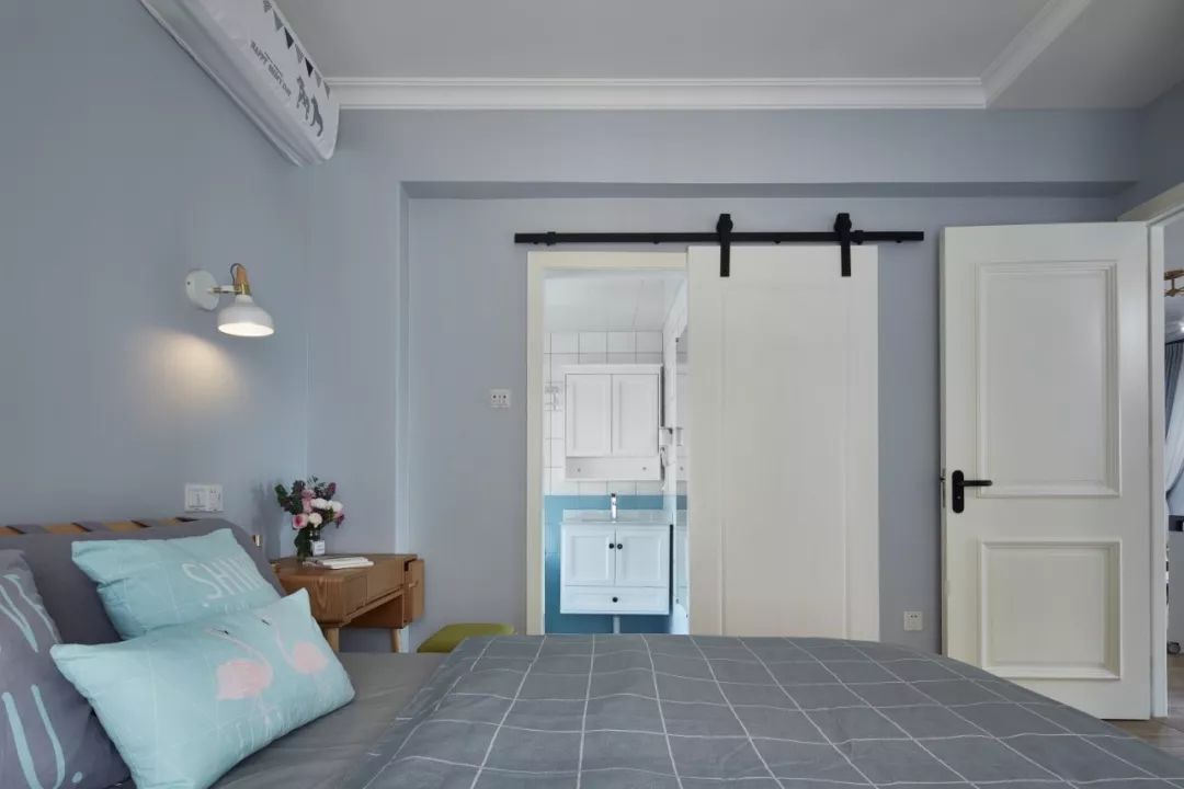 主卫是灰白蓝的搭配,清新中带点大气风,收纳和干湿分离都做得不错,安利。