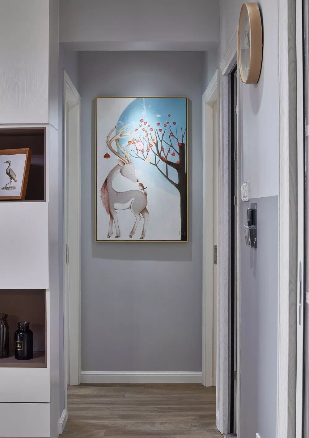 过道背景墙用装饰画进行点缀,为家增添温馨之感。