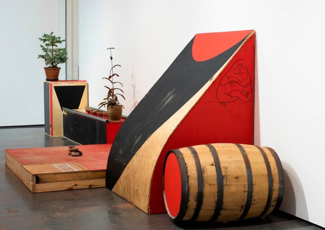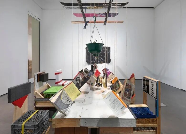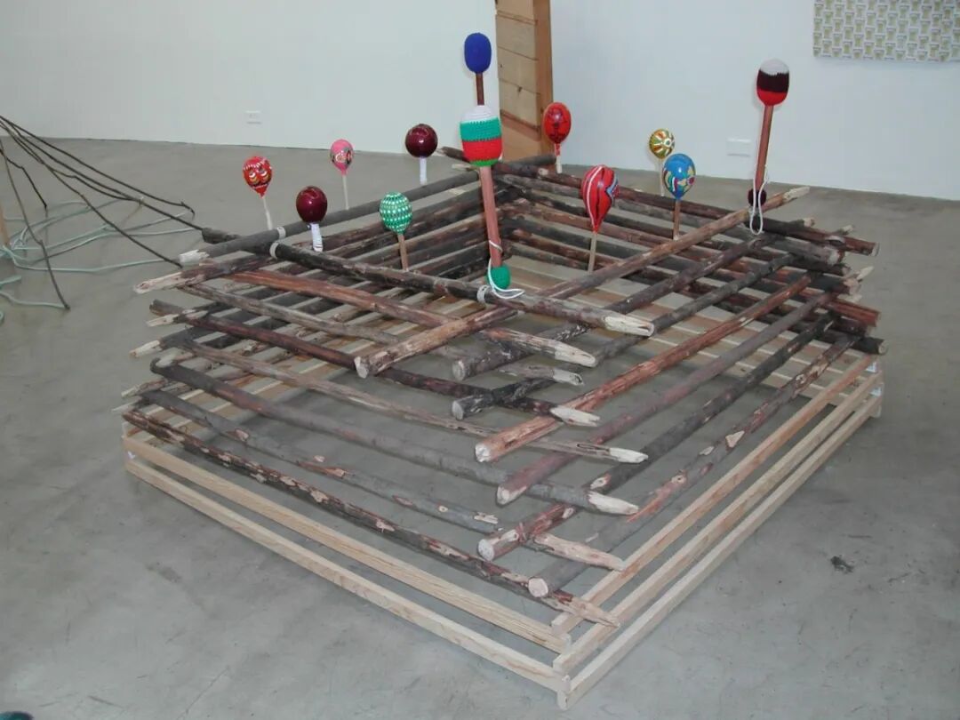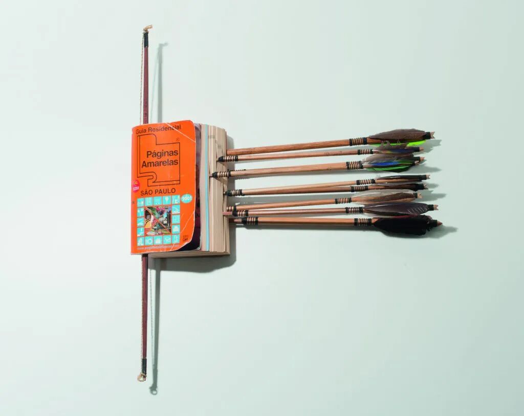 作品是一个由羽毛、圣保罗电话簿等制成的弓箭,标题来自弗兰克·劳埃德·赖特在1923年为东京设计的一间酒店,这家精英酒店持续鼎盛到二战后,随着时间流逝,它渐渐被视为过时和肮脏的,并在1960年代被拆除。