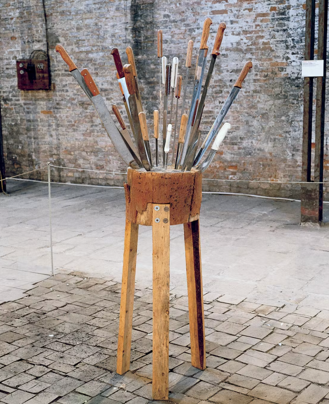 快乐而温暖 2012 钢筋、链条、羽毛和肉 381 x 208.3 x 129.5 厘米