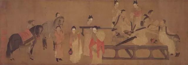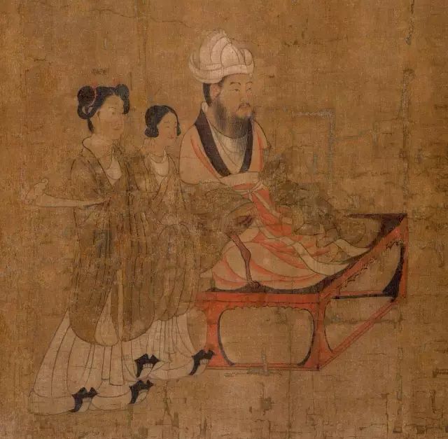 这得说说我们汉人坐卧习性的变革,之前也说过椅子比较晚进入汉人的生活。而在秦汉时期,人们喜欢坐在席子上,到了汉末,大概因为跪坐席子比较不舒服,于是大多改成坐床榻。当然,如果在野外,又是穷人,条件不那么好,照样坐席子;至于有钱人,则不管走到哪里,依旧坐床榻,因为人家有大群仆人,随时带着各种家具跟随,所以你会在大量的古代人物画中看到榻的身影(本篇文章中的古画即是例证)。总之,汉末至魏晋时期,从坐席改坐榻,算是生活方式的一大变革。