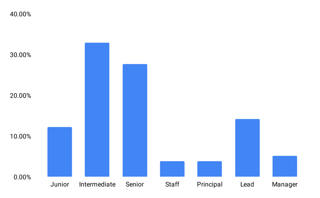 离职设计师的资历比例是一个非常有趣。我注意到,中级设计师大概占比 33%,其次是高级设计师占比 28%,而初级的占比则仅有 12%,中级的部分并不奇怪,但是高级比初级多这么多,则显得和普遍认知有差别。这是印证行业成熟的另外一个标志么?