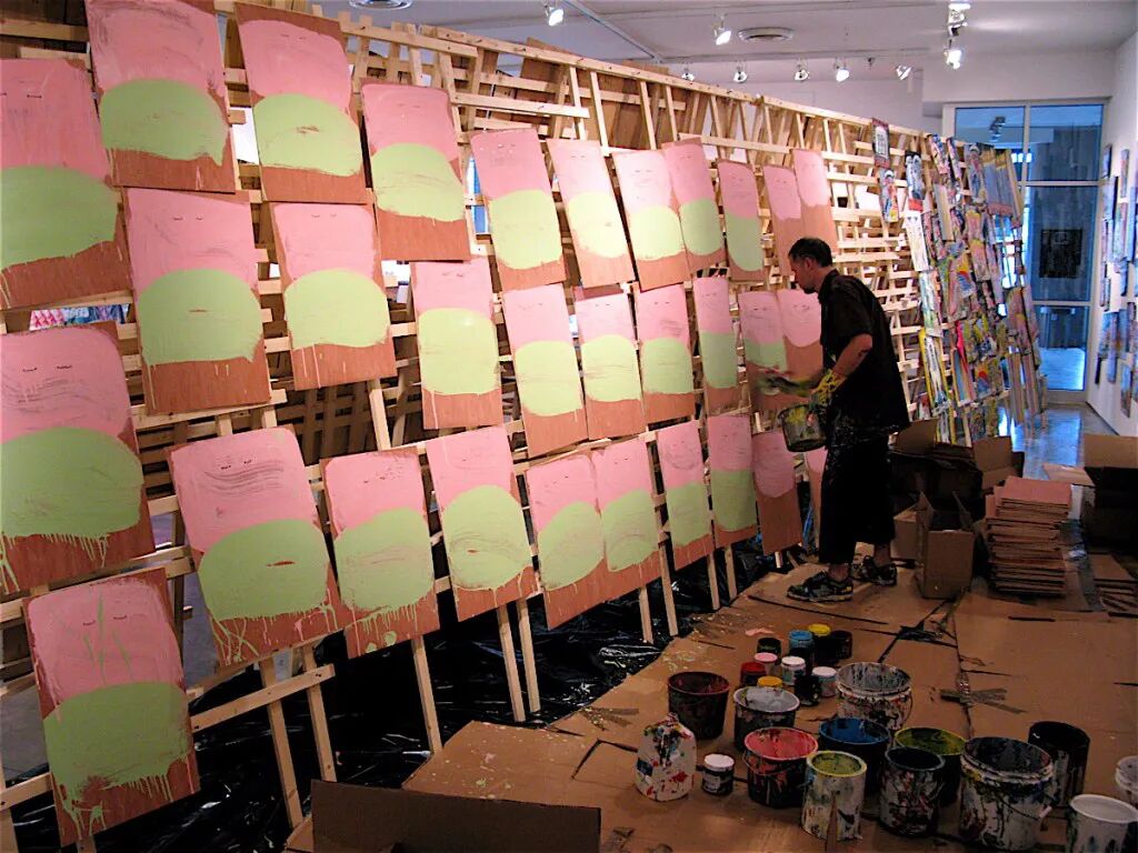 “这是我的产品,和我的工作过程。如果你是一个有创造力的人,过度思考是很糟糕的,它会毁掉任何可能出现的好东西。我花了大半生来努力不去想我在做什么。我尽我最大的努力,但我从不担心它是好是坏,这就是为什么我一天画100幅画,尽管人们说‘好吧,这些画不怎么样’,但至少我画了100幅。