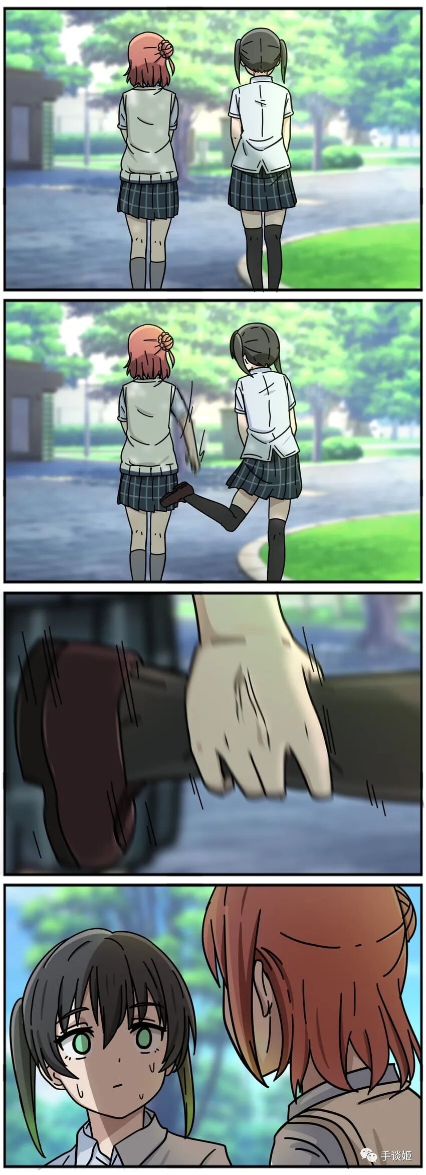体现在动画之中,流传最广的应该就是这个op中踢屁股的场景了,动画中有许多类似的动作,能体现两人的亲昵关系,对此,手谈姬只能说: