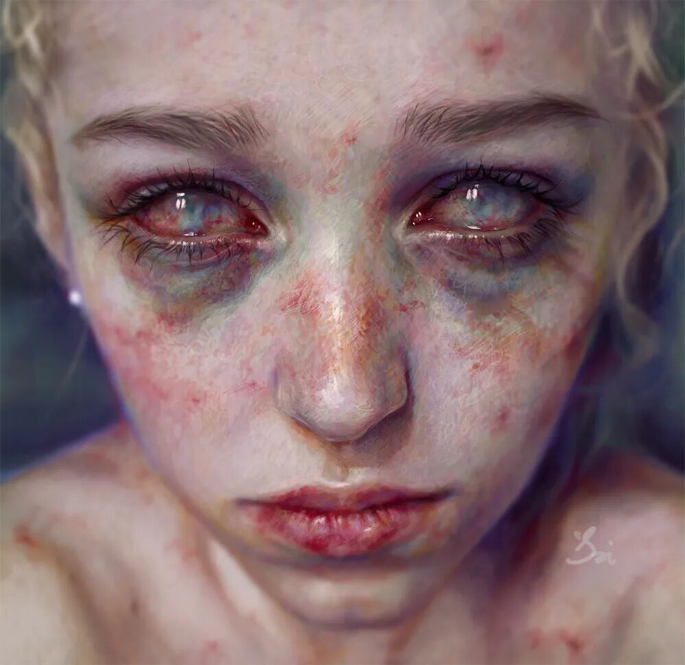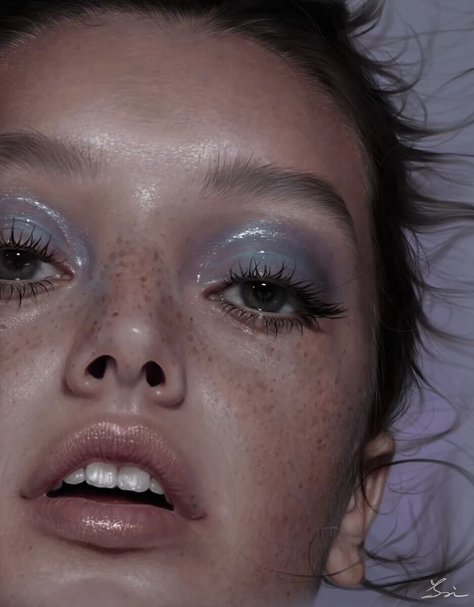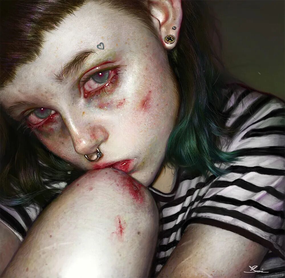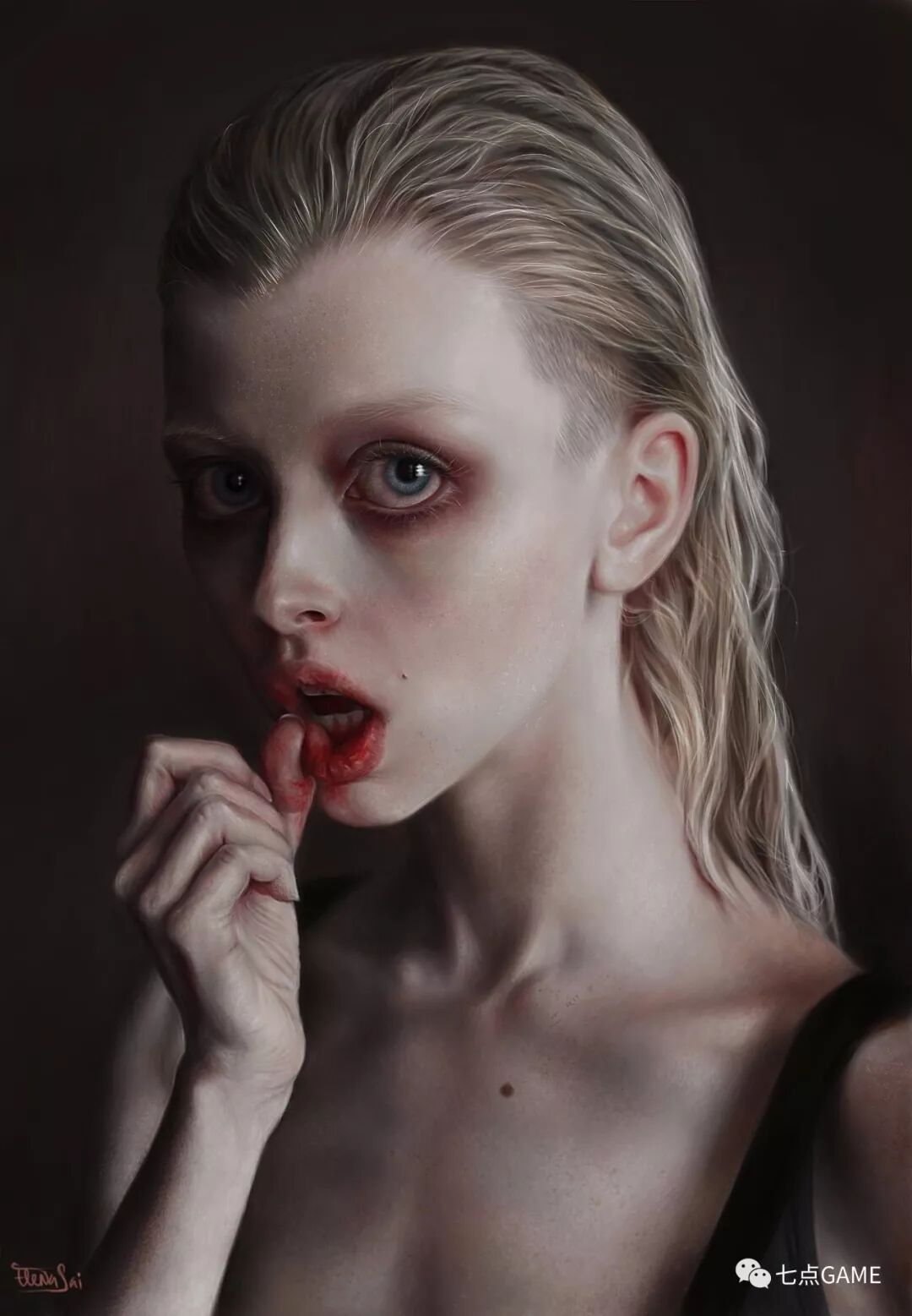 来自乌克兰的数字艺术家,他的作品充满了令人毛骨悚然的现实主义特色,一组组被重创的面孔令人印象深刻,让观者看到更多情绪表达和想象空间。抛开美术而言,其实每个人物的妆容都挺精致,普通的作品中,配以独特的打光,也有些岁月静好的感觉。