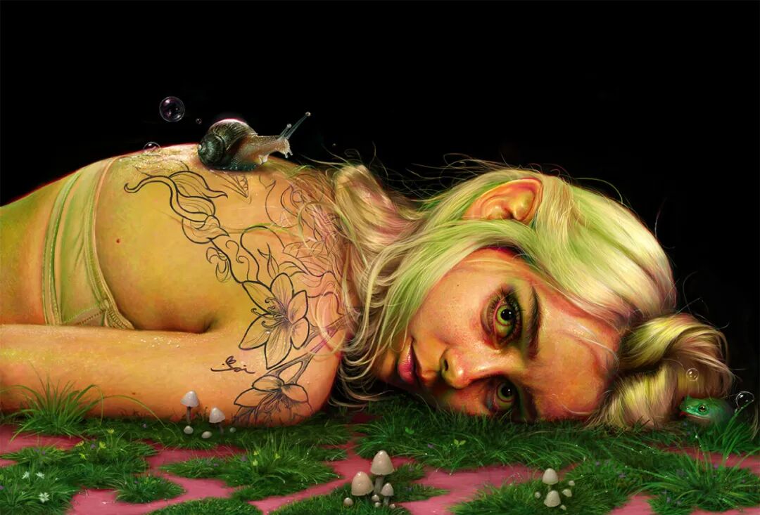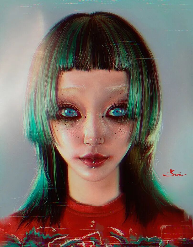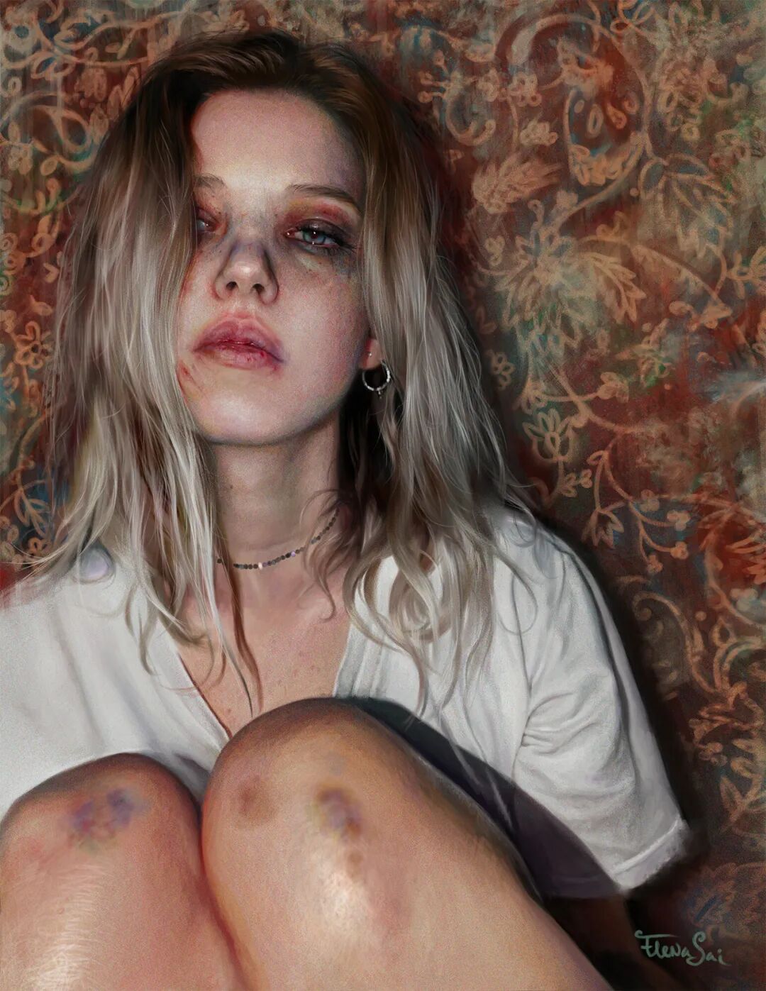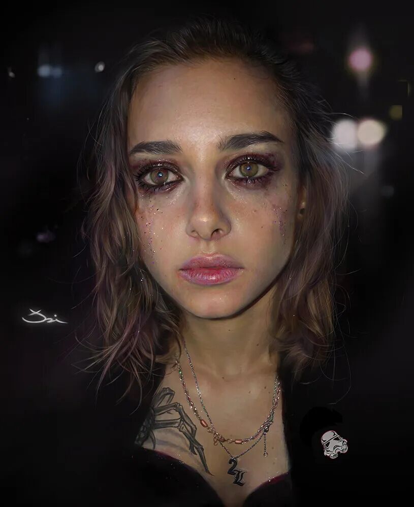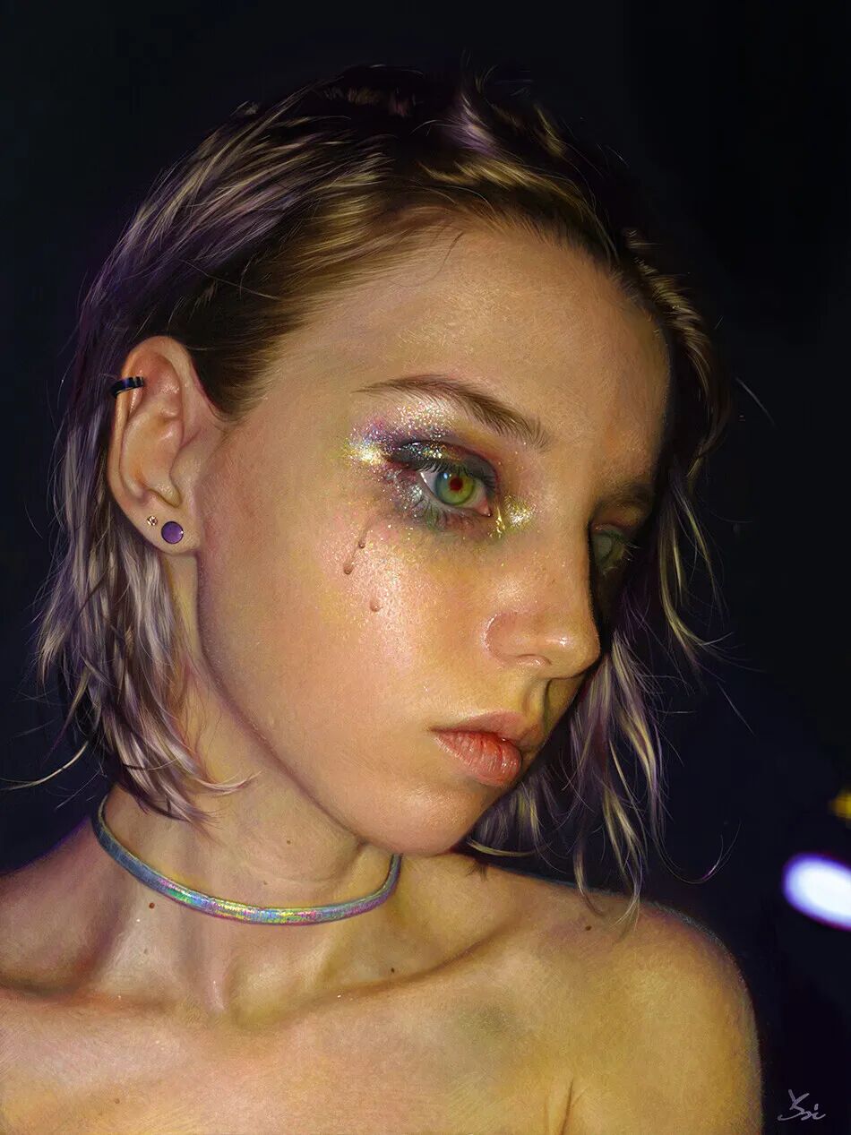 来自乌克兰的数字艺术家,他的作品充满了令人毛骨悚然的现实主义特色,一组组被重创的面孔令人印象深刻,让观者看到更多情绪表达和想象空间。抛开美术而言,其实每个人物的妆容都挺精致,普通的作品中,配以独特的打光,也有些岁月静好的感觉。