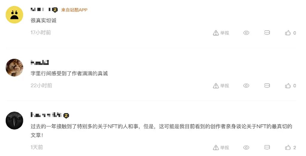 站酷上的文章《我和NFT的那些事一赛道篇》下的酷友评论