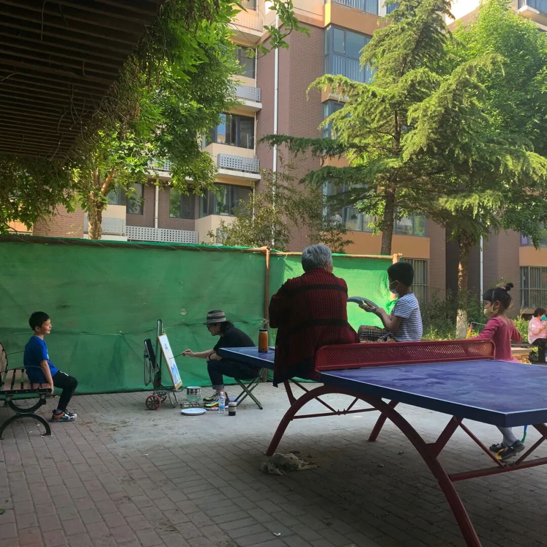 在小区看到了正在写生的邻居浩翔,要不是有个大妈坐在乒乓球台上,很像疫情前的上海。说真的,这种环境中看到这样的画面,很美妙,很高级。