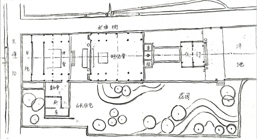 芙蓉村重视读书教化与科举选拔,改宅为私塾,设立芙蓉书院。芙蓉书院是芙蓉村的文教中心,“耕读”文化的代表场所。其建筑形式规整,用料考究,不同于芙蓉亭的质朴,相对而言更突显陈氏家族对儒学教育的重视。书院坐西朝东,北临主道如意街(长塘街),西临芙峰路,自东向西轴线依次为泮池、仪门、杏坛、明伦堂、讲堂及后院。南面附山长住宅,包含爱知堂、杂院和花园,这是我在芙蓉书院中除芙蓉亭最喜爱的一处。