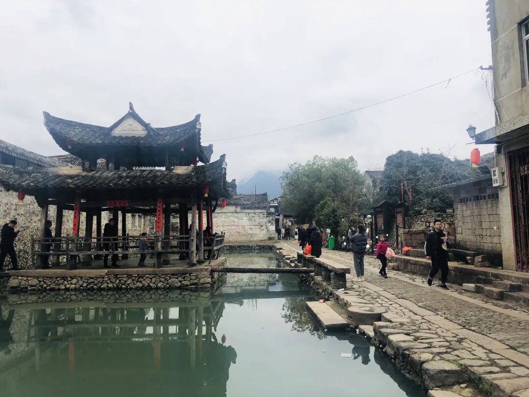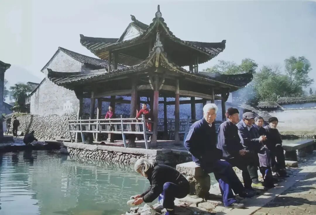继续西行,随着人的视点向西逐渐移动,视野不断展开,便来到整个村子空间序列的高潮——芙蓉池。芙蓉池可谓全村的公共园林,承担社交休闲、集会、浣衣等的功能。池水上立着一座四角亭,南北各有约3米宽石板与两岸主路相连,这便是芙蓉亭。