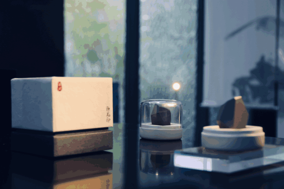 “设计源于枯山水文化,瓶身以枯山水石头造型为创意源泉,石头造型上部融入水波纹元素体现新昌生态环境。整体造型呈现的是水滴落于石头溅起的涟漪,是动静结合,亦山亦水的禅意,打造茶饮山涧的意蕴。”