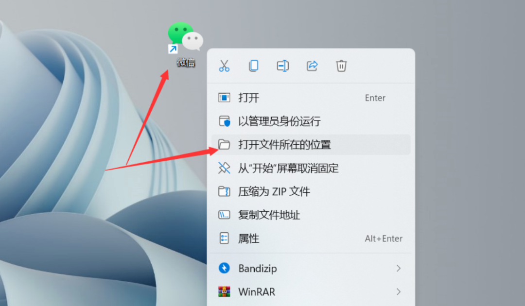 先在桌面右键微信,然后选择打开文件所在位置,然后打开微信的安装文件夹,默认为 C:\Program Files (x86)\Tencent\WeChat