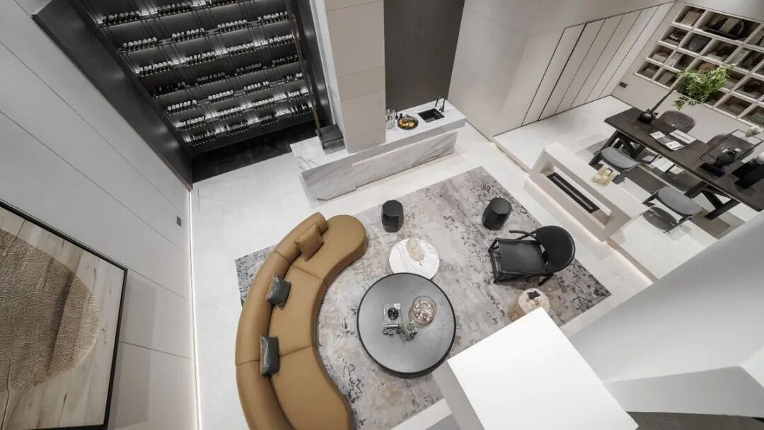 独立入户的半开敞梯厅成为住宅的前院,“前院—厅堂—主院”形成中轴空间,左右两厢为卧室区和客卧区;空间既有传统宅院的秩序感,又有现代生活的流动性。