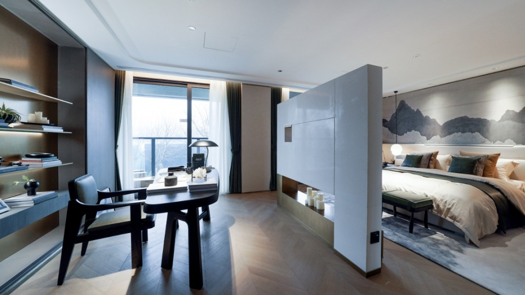CHINA山水江南建筑面积约167㎡中叠户型亦给品鉴官留下了深刻印象,最为吸引的是以鼎阔客厅外接阳台,打造出的第二会客厅,由此延伸出的尺度感,能给人最直观的舒适感受。