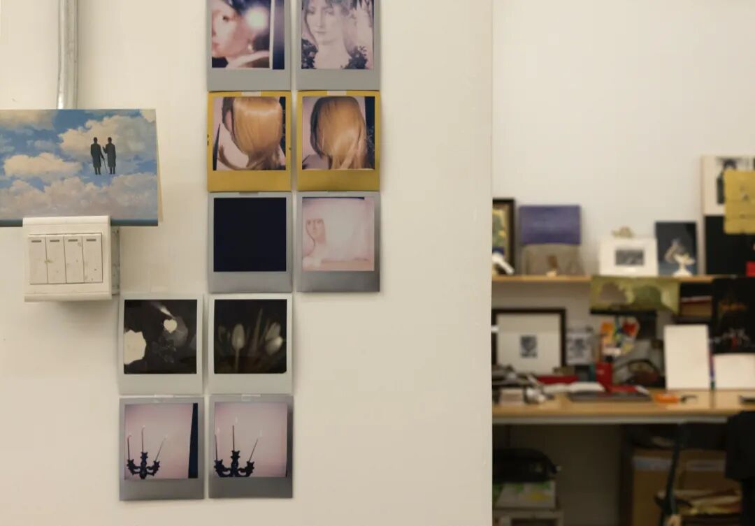 吴笛聊自己的作品吴笛聊工作室里未完成的作品。她近期的绘画会先做一个金箔的底子,做着做着距离刚开始的状态越来越远,这时候可能就完成了,她说也许是在追求一种失控的感觉。生活中感性的体会,以及日常对图像的大量阅读,是吴笛工作的开始。
