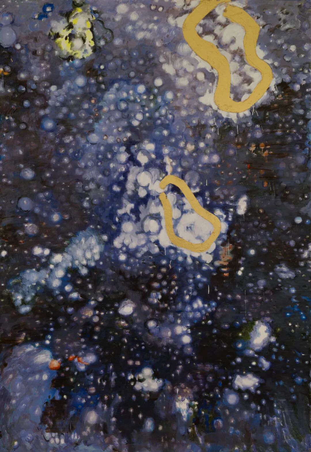 ecstasy 5,金箔、马克笔、木板油画,55x75cm,2020