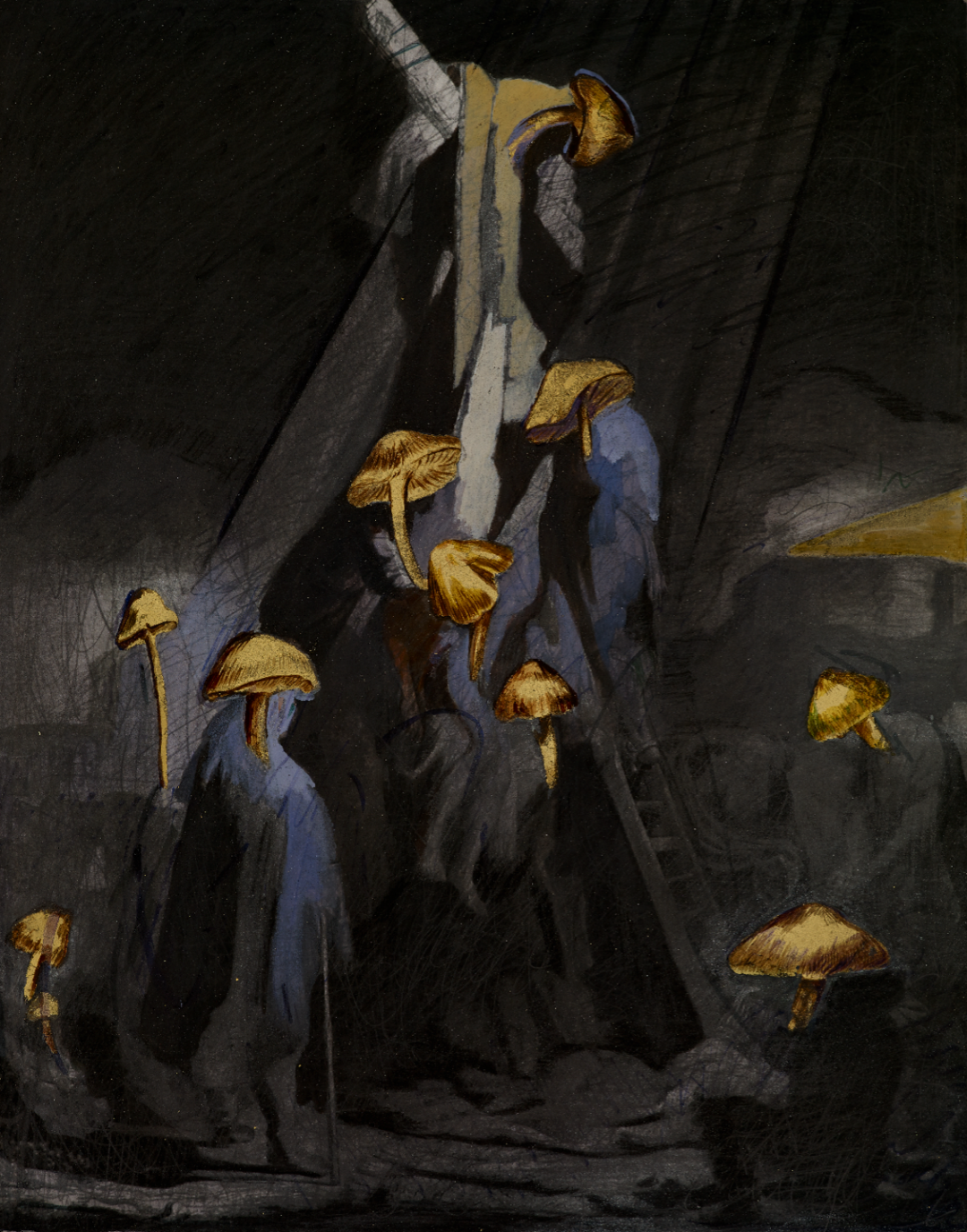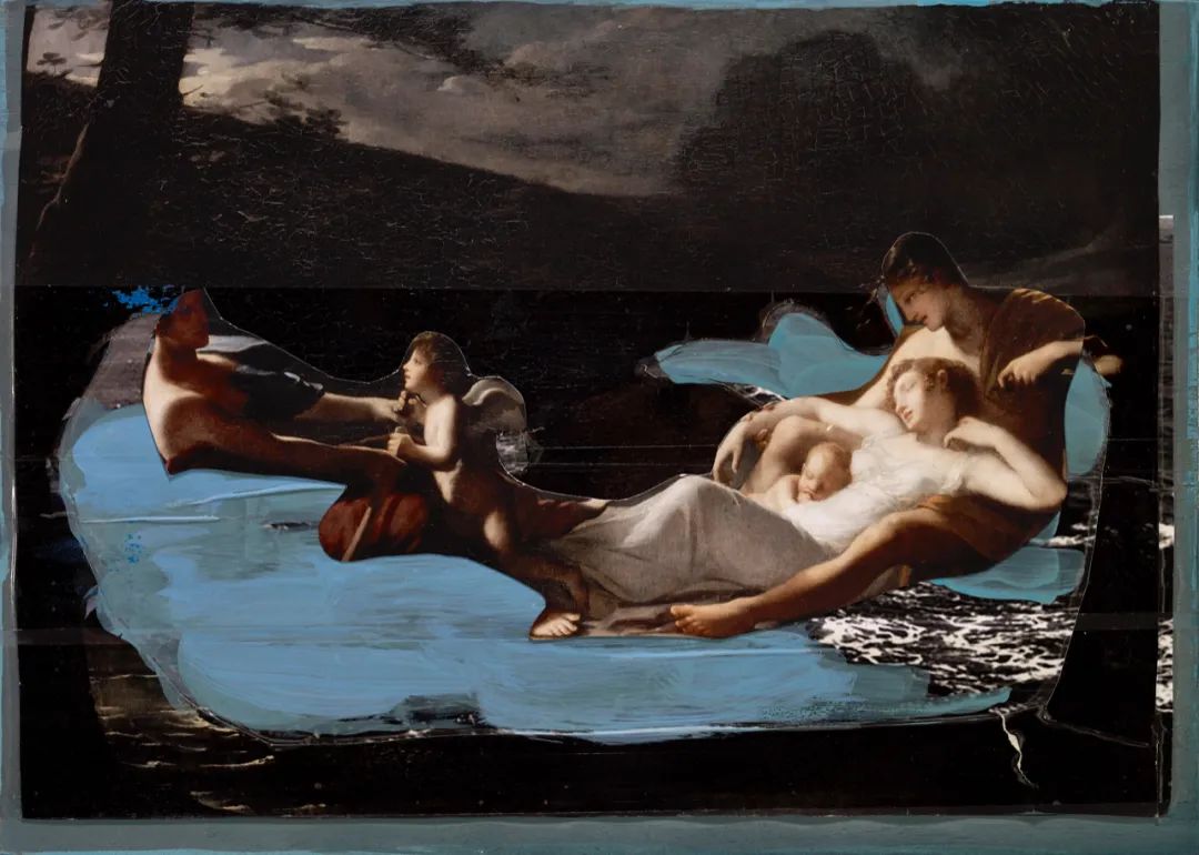 Ecstasy No.1,铅笔、油画、金箔、水彩笔、数码喷绘、铝板,39x27cm,2019