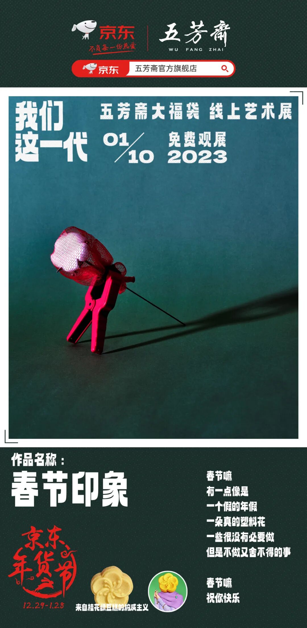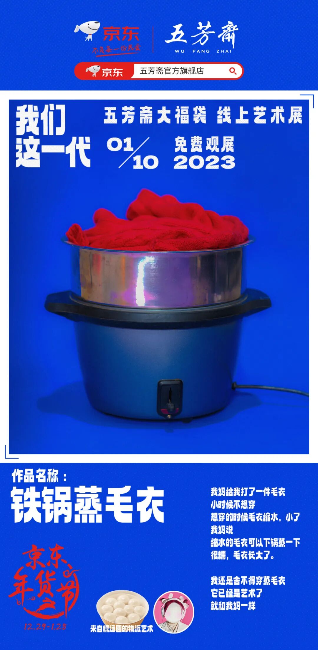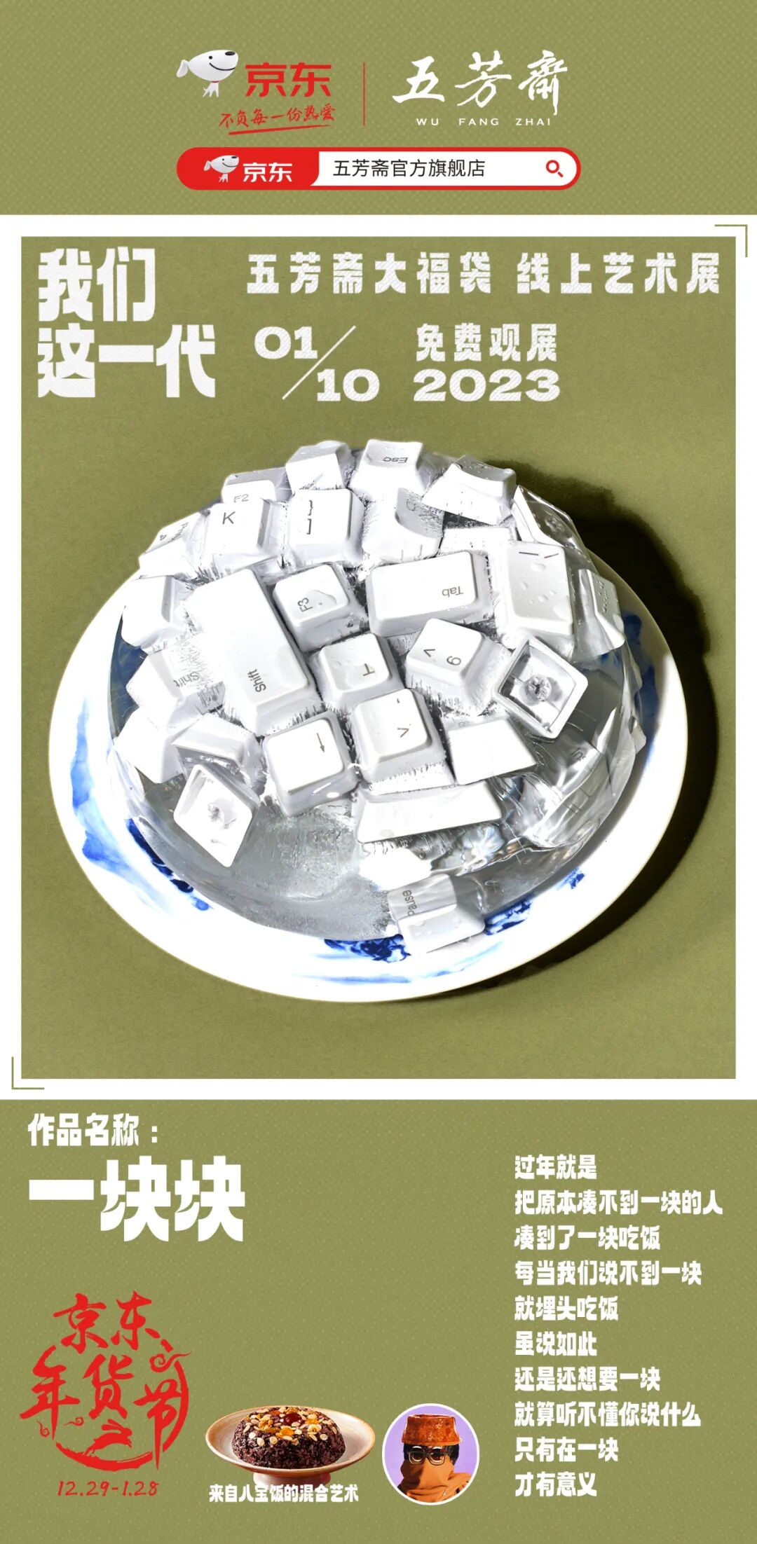 今年年货节,五芳斋和京东做了一个名为《我们这一代》的线上艺术展。那个经常拍科幻片、动画片的老字号品牌,居然开始玩起了当代艺术。
