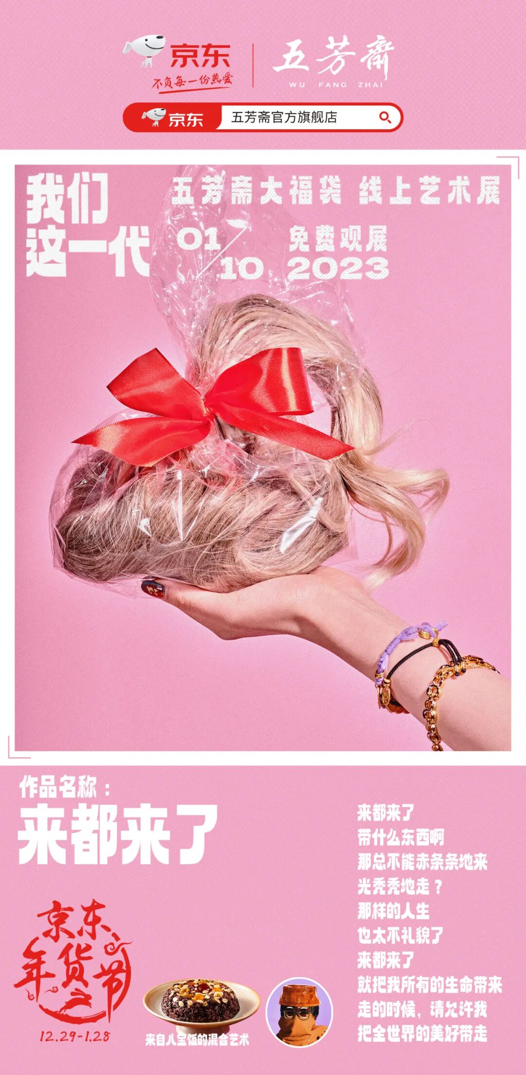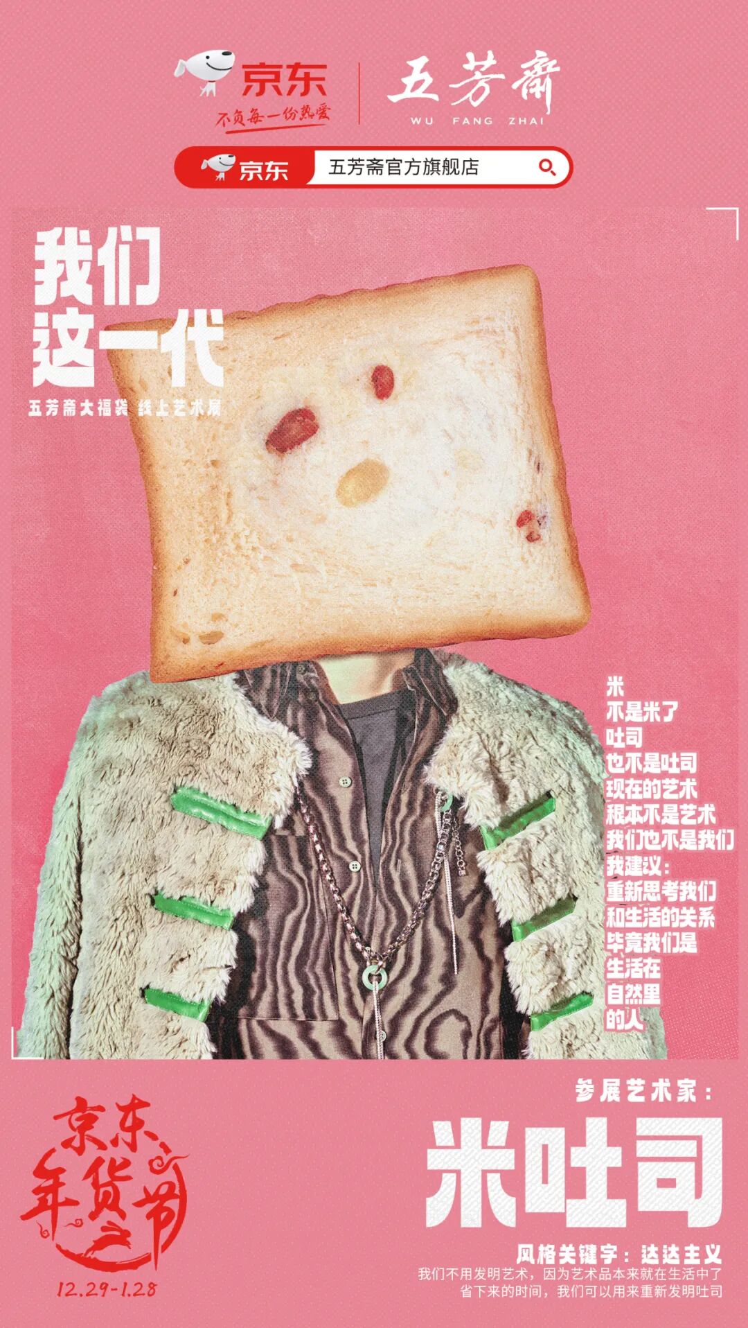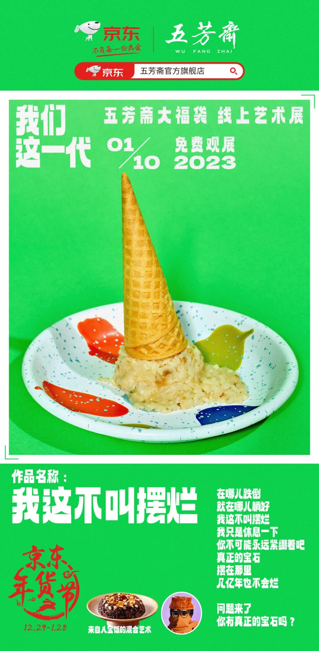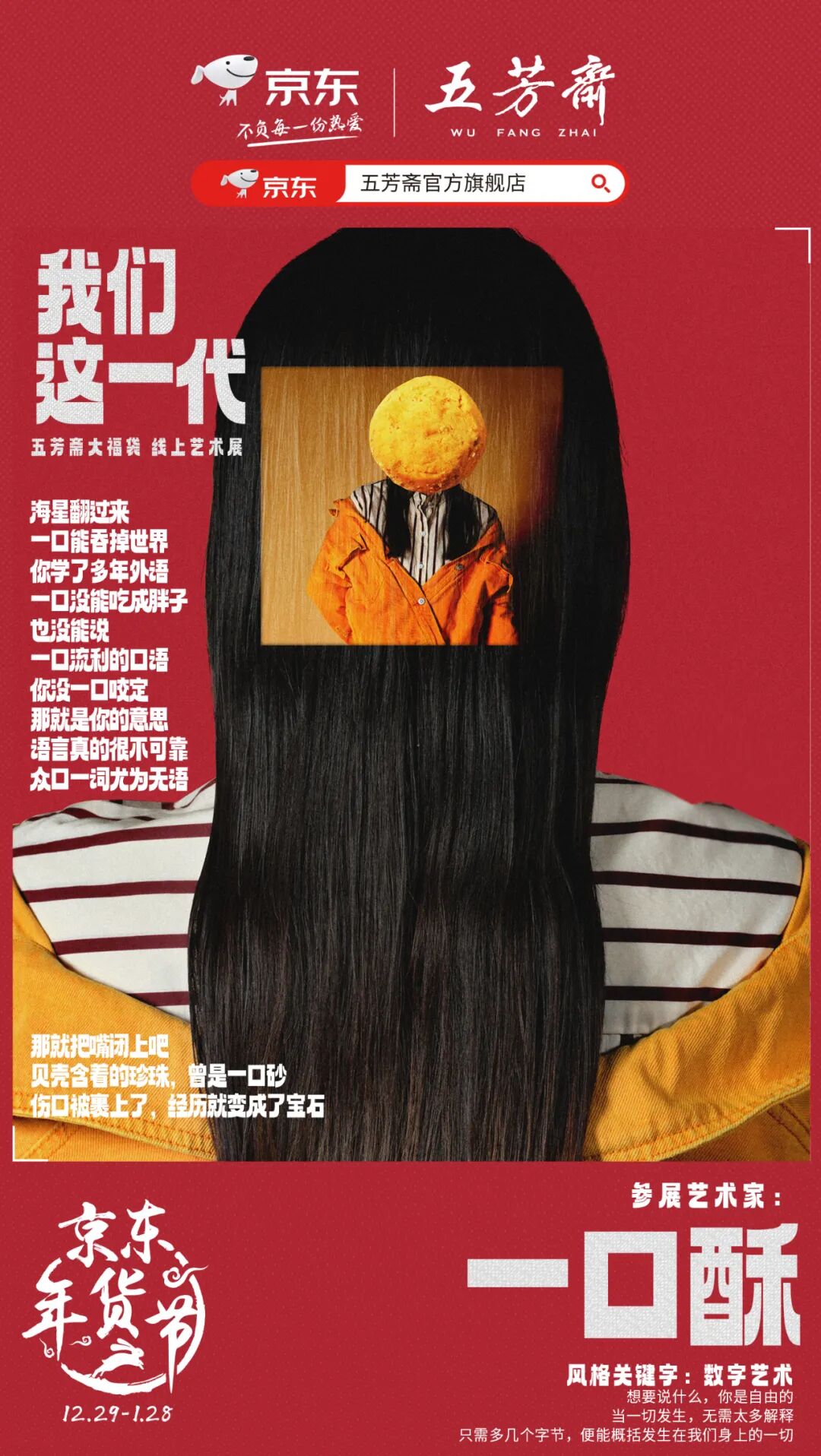 今年年货节,五芳斋和京东做了一个名为《我们这一代》的线上艺术展。那个经常拍科幻片、动画片的老字号品牌,居然开始玩起了当代艺术。
