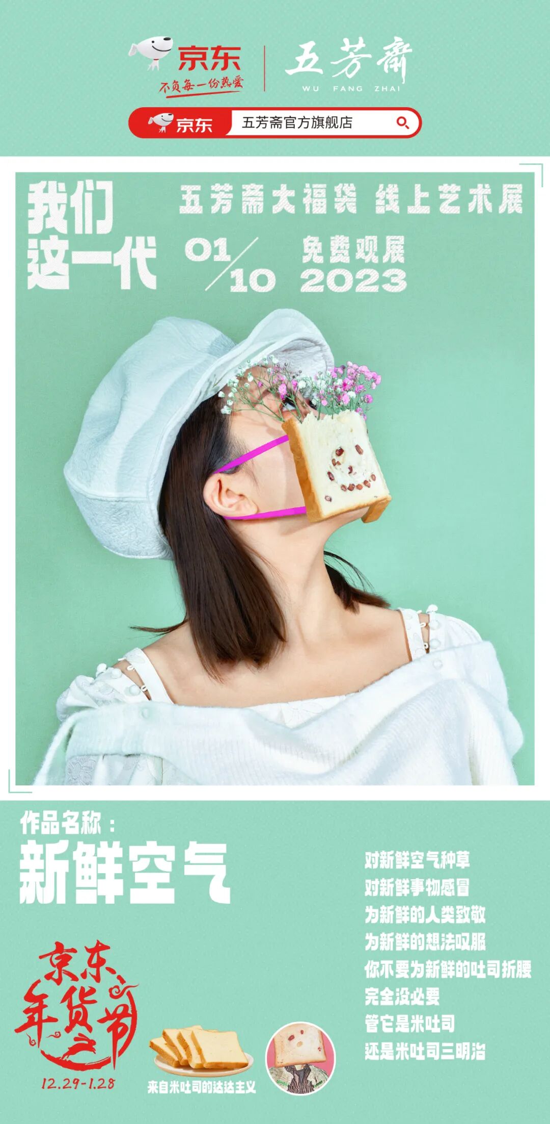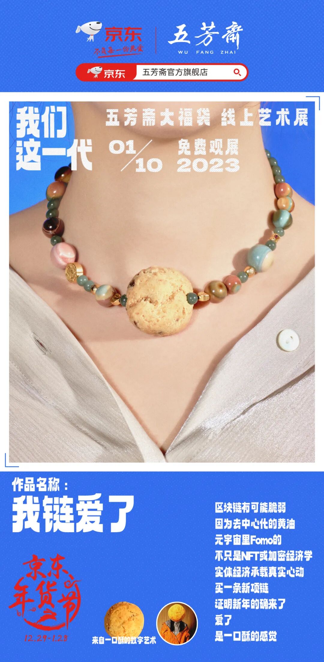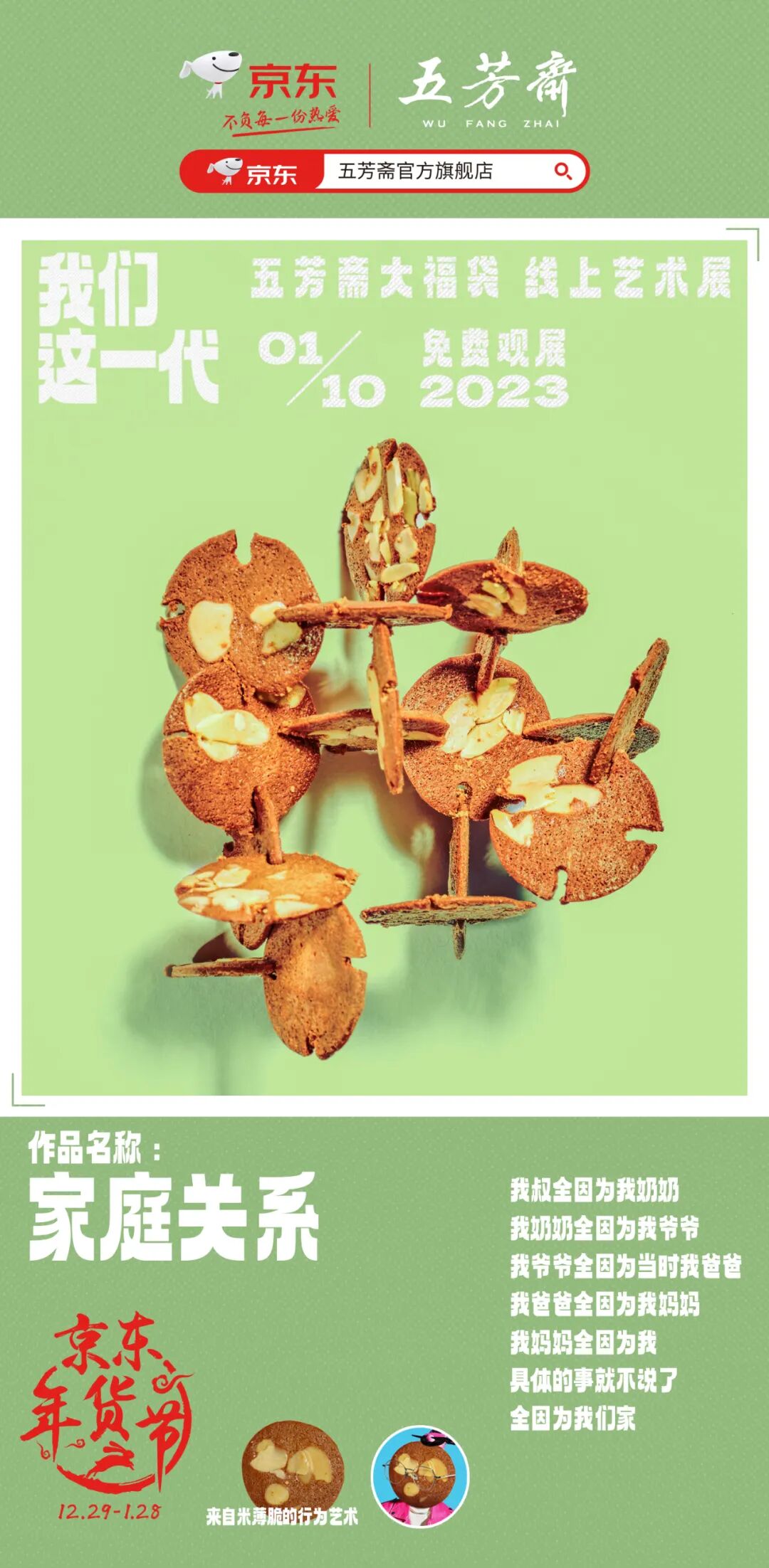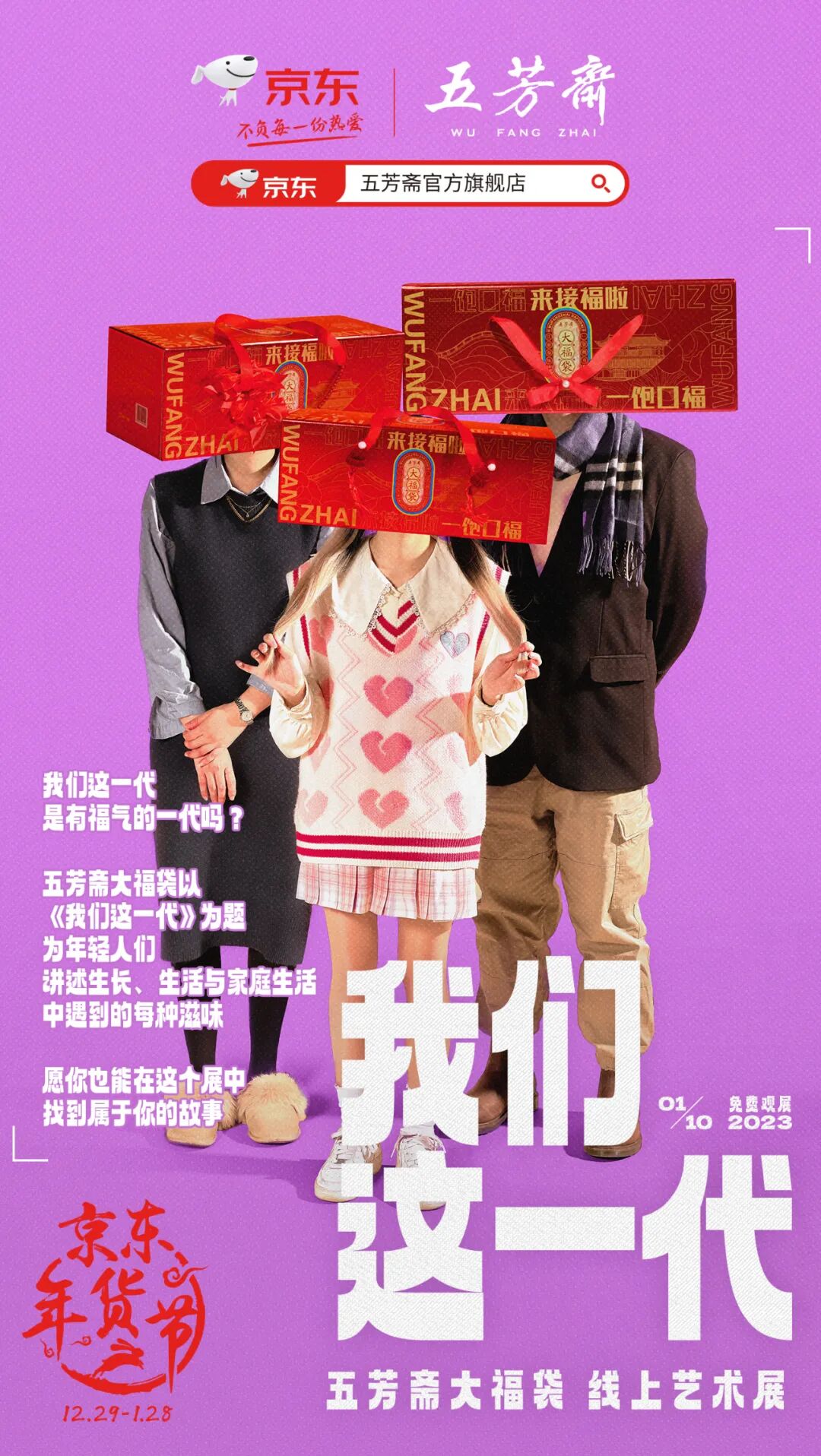 完美满足了客户产品要再大一点,而且要比人物醒目的需求。在展览的序言中,也直截了当地说明了来意:我们这一代,是不是有福气的一代?用产品说说我们这一代的故事。