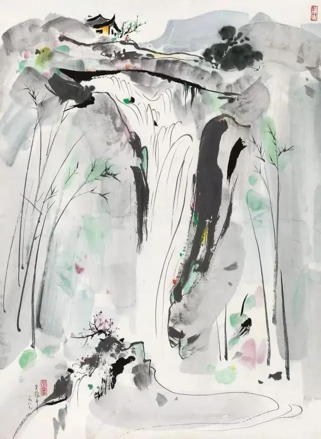 吴冠中《天台山飞瀑》
