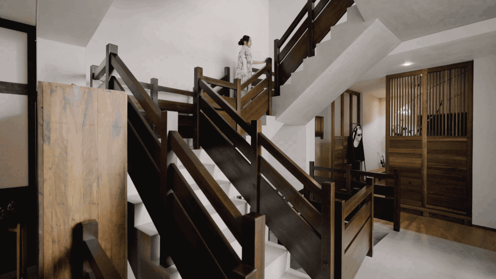 ▲家中处处细节夫妻俩都花了心思:简单的楼梯形态加上木质护栏,公共空间之间用木质屏风代替墙,别有一番风味