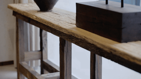 这一件橫向4门结构的供桌,使用天地轴、复古的门拴,整体是对清代样式进行了极简化的处理,看起来既复古又现代。