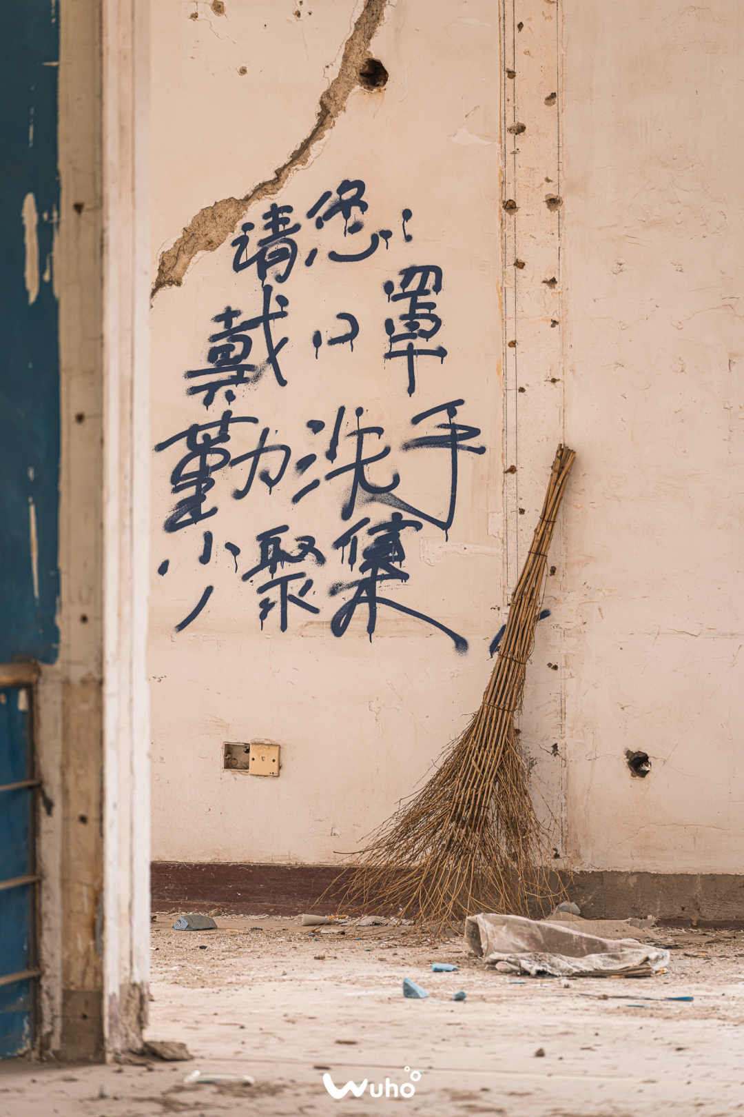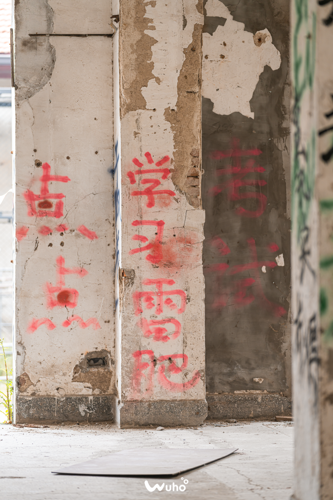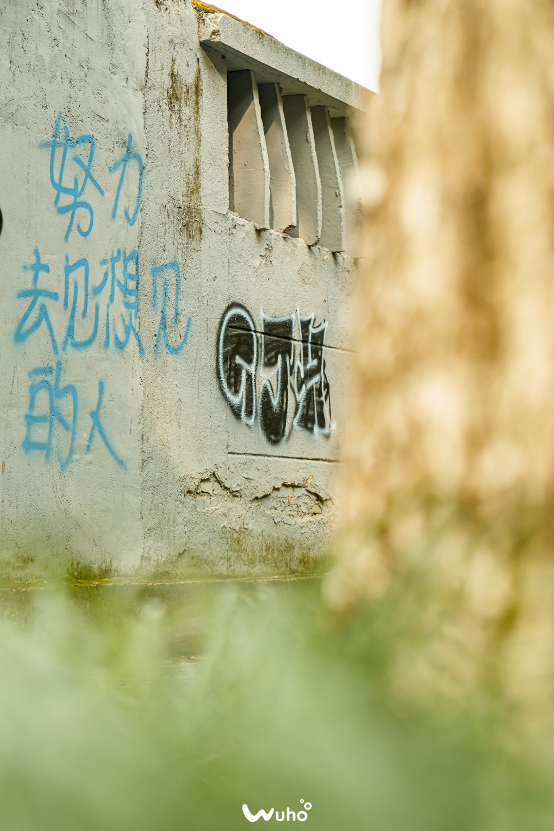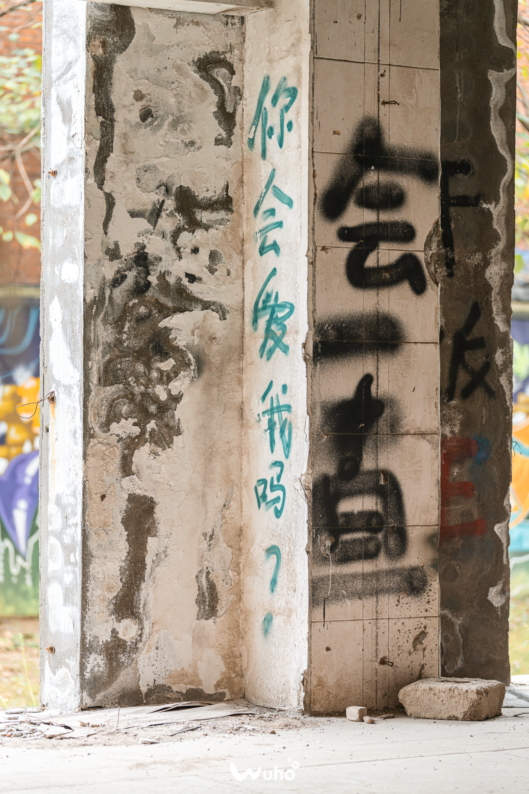 在废弃建筑墙壁上偶然瞥到的一段涂鸦。