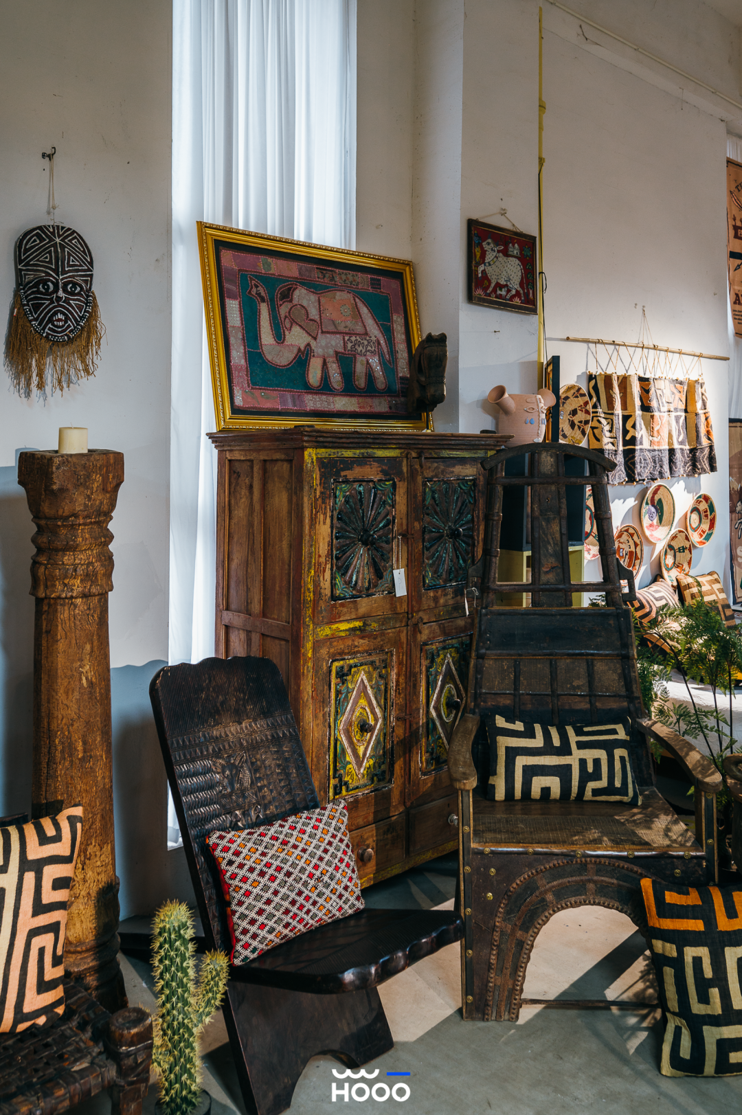 据主理人介绍,这里的每一件商品都是其亲自去海外寻觅,再从原产地漂洋过海,构成了眼前的亚非拉文化神秘集合地。原本这里只做仓储之用,但随着对异域文化好奇的人越来越多,便将仓库部分区域开放为展厅。