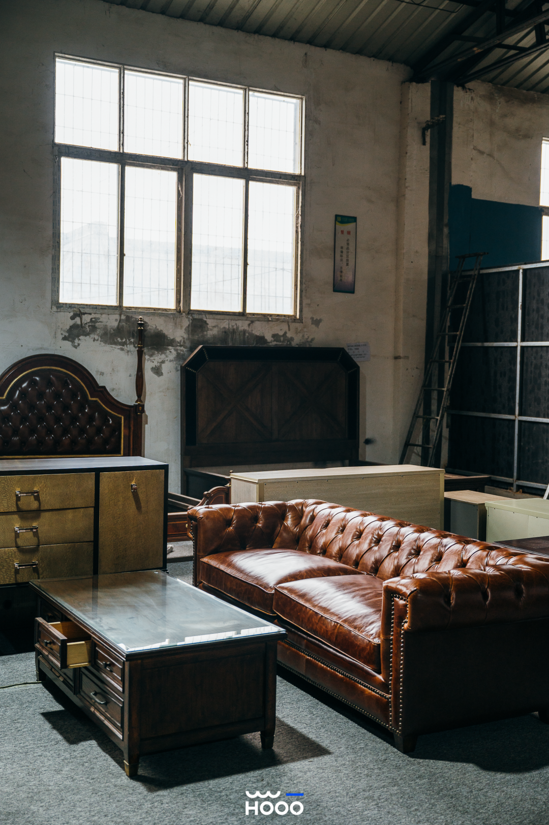 这是一家外贸家具店,线下仓库成品只是其中一部分,陈设也不像家居店的考究,有的家具连朝向都没仔细想过,找了个空地就安置了。