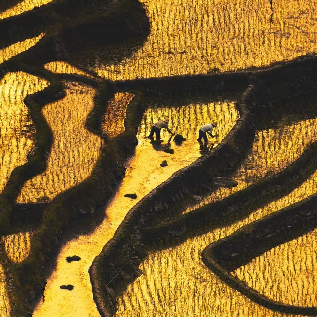 除了流连春色忘返的游人,还有春耕到日暮才归的农人。