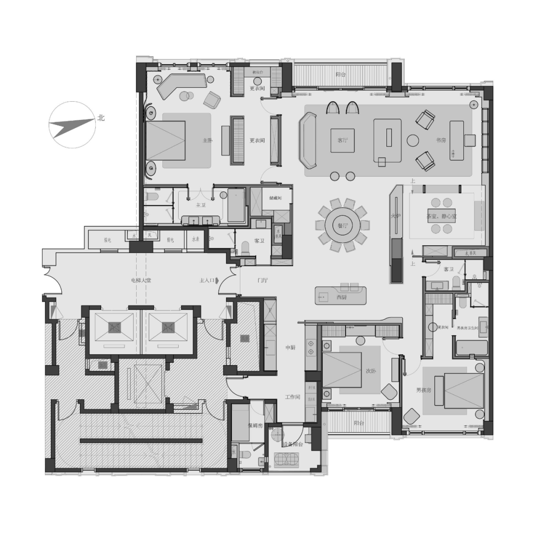 书房及客厅的关系又为第二轴线