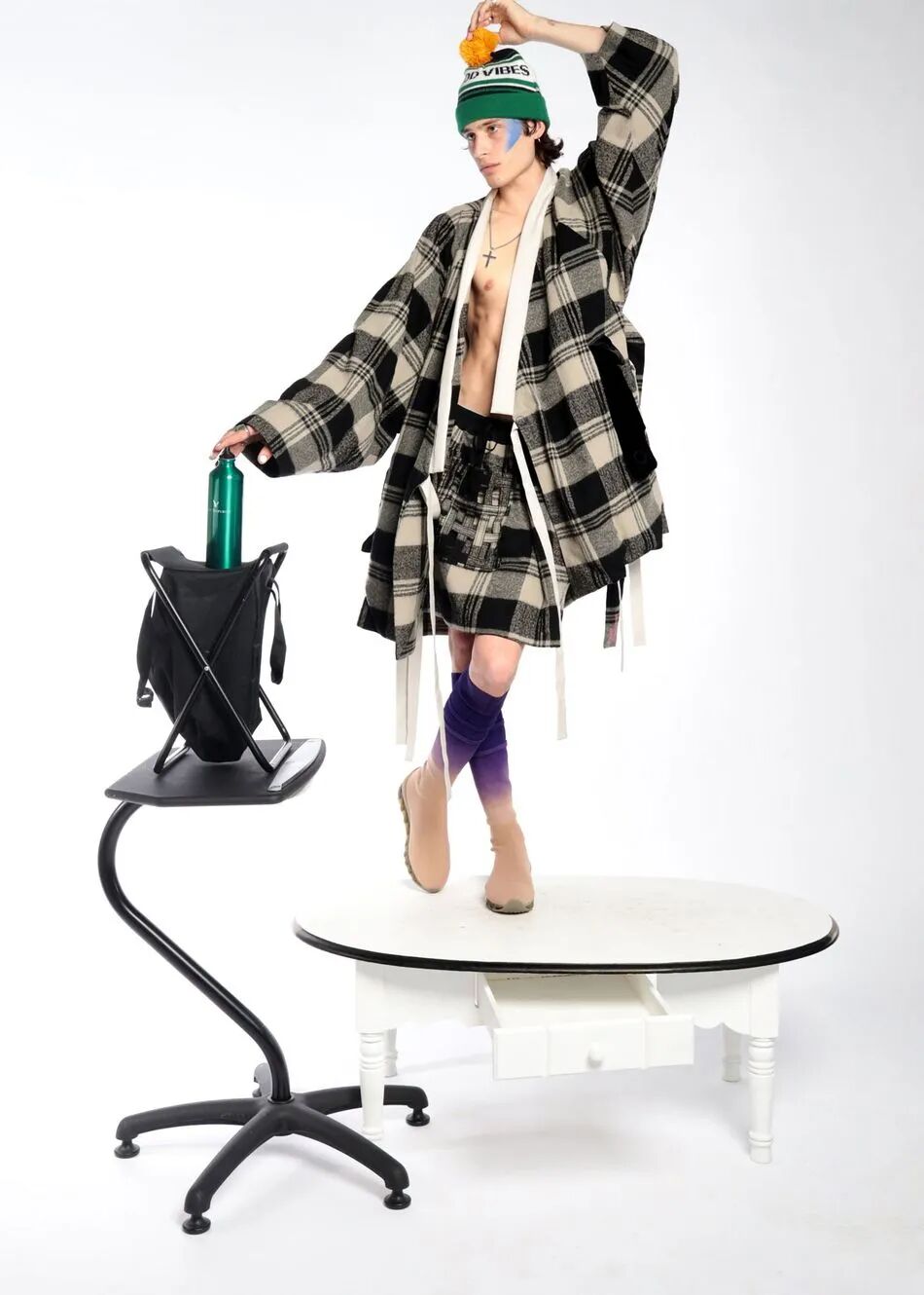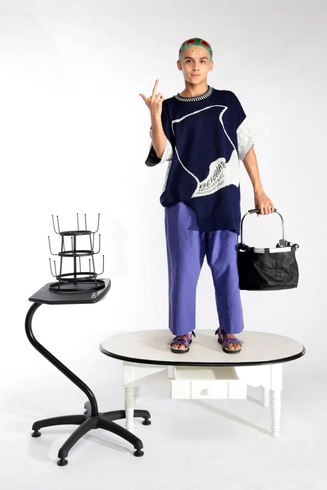 Bernhard Willhelm擅长打破规则,以各式矛盾、鬼马、充满奇思的设计元素,糅合于一身的同时,又能充分呈现其裁剪的天赋。不同文化与传统的服装元素都能被堆积于一处,全身没有重点,只因为全身都是重点。