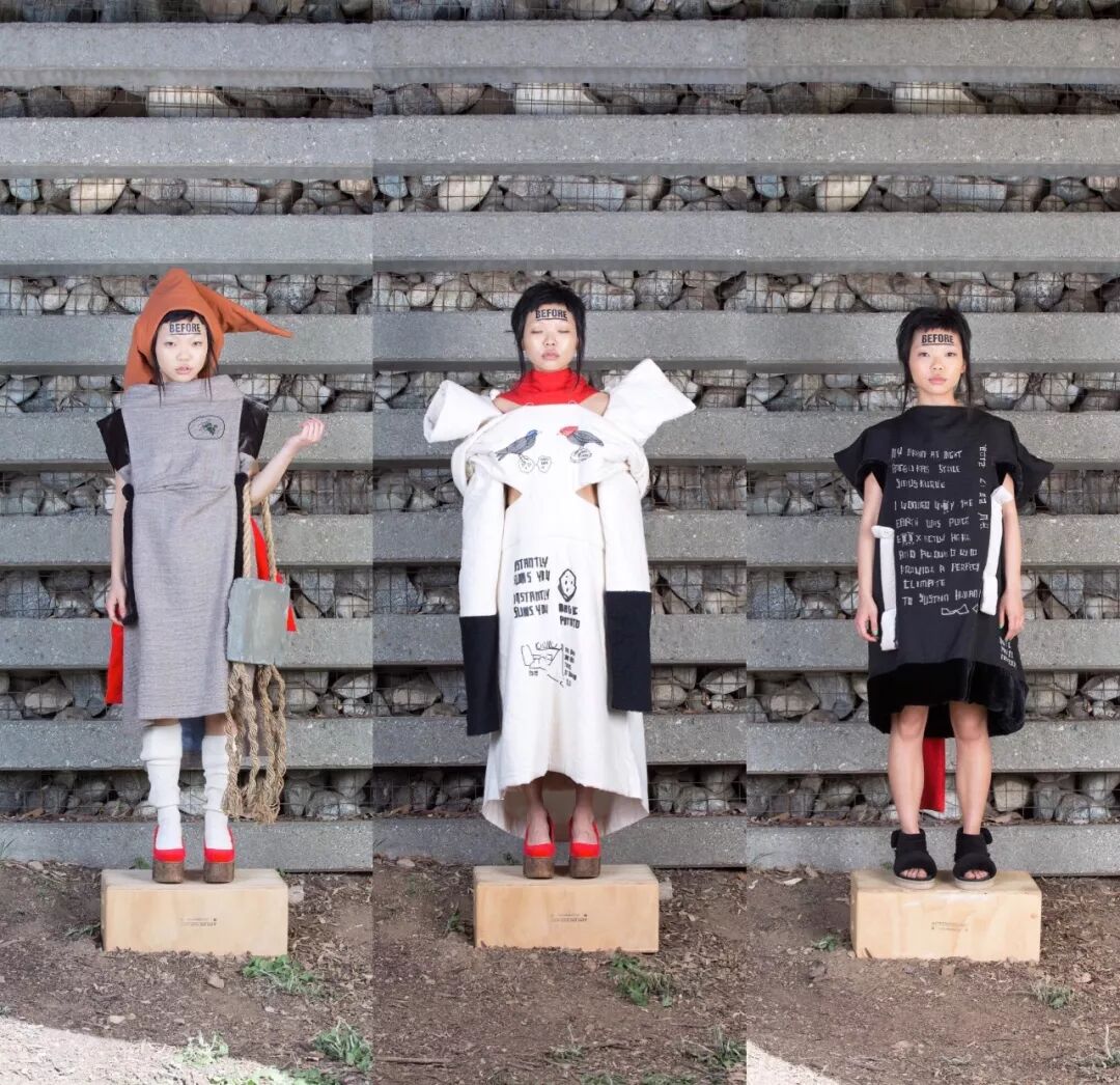 设计略显无厘头,以一些怪异的动作进行展示,搭配色彩鲜明的服装设计,演绎出一场神秘莫测的行为艺术。