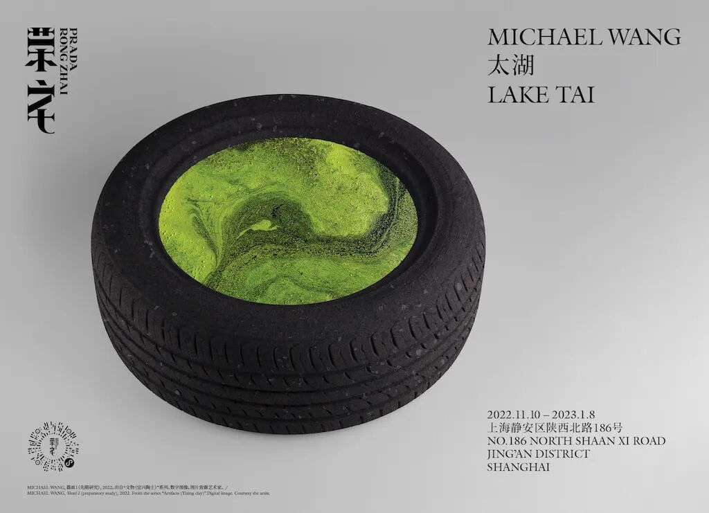 此次展览是艺术家Michael Wang个展,展览中尤其是“太湖(太湖石)”系列作品,得益于与上海同济大学的学生合作进行的研究。他们在现场勘探、材料收集、测试以及制作方面为Michael Wang提供了支持。他们与艺术家紧密协作,利用以有机物和工业废弃物制作的全新可持续材料进行创作。在“太湖(太湖石)”系列雕塑中,Wang以从太湖湖区的水道中提取的藻类、纤维素和甲壳素为原料,并运用3D扫描和铣削技术,将这些生物原材料塑造成复杂的形状。
